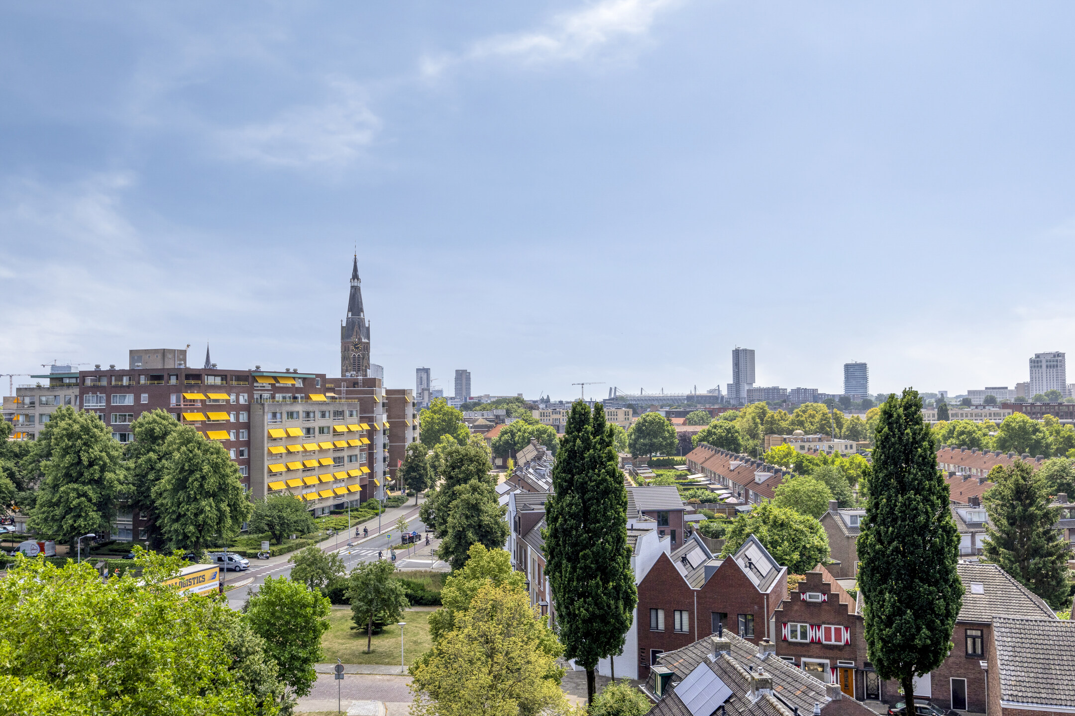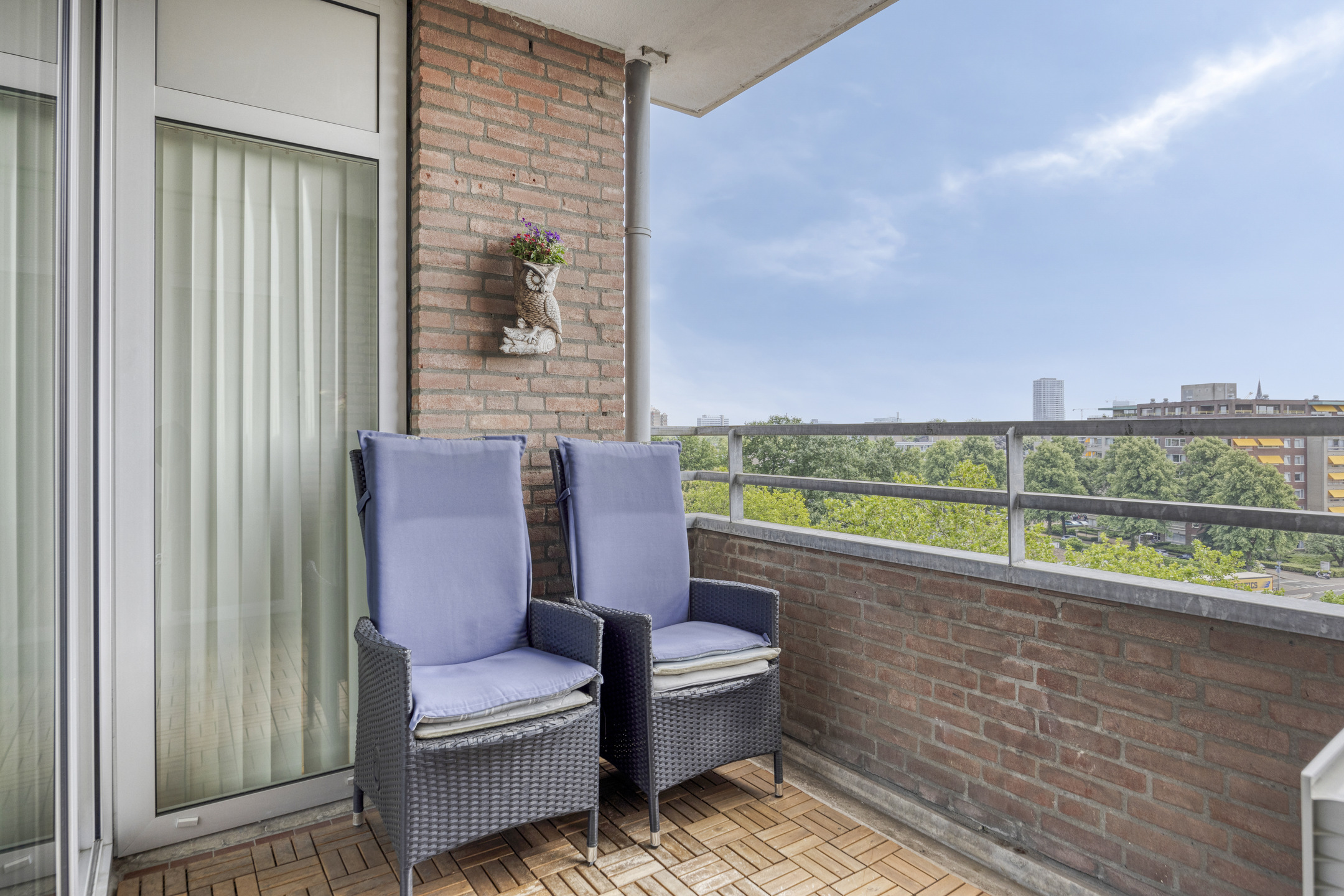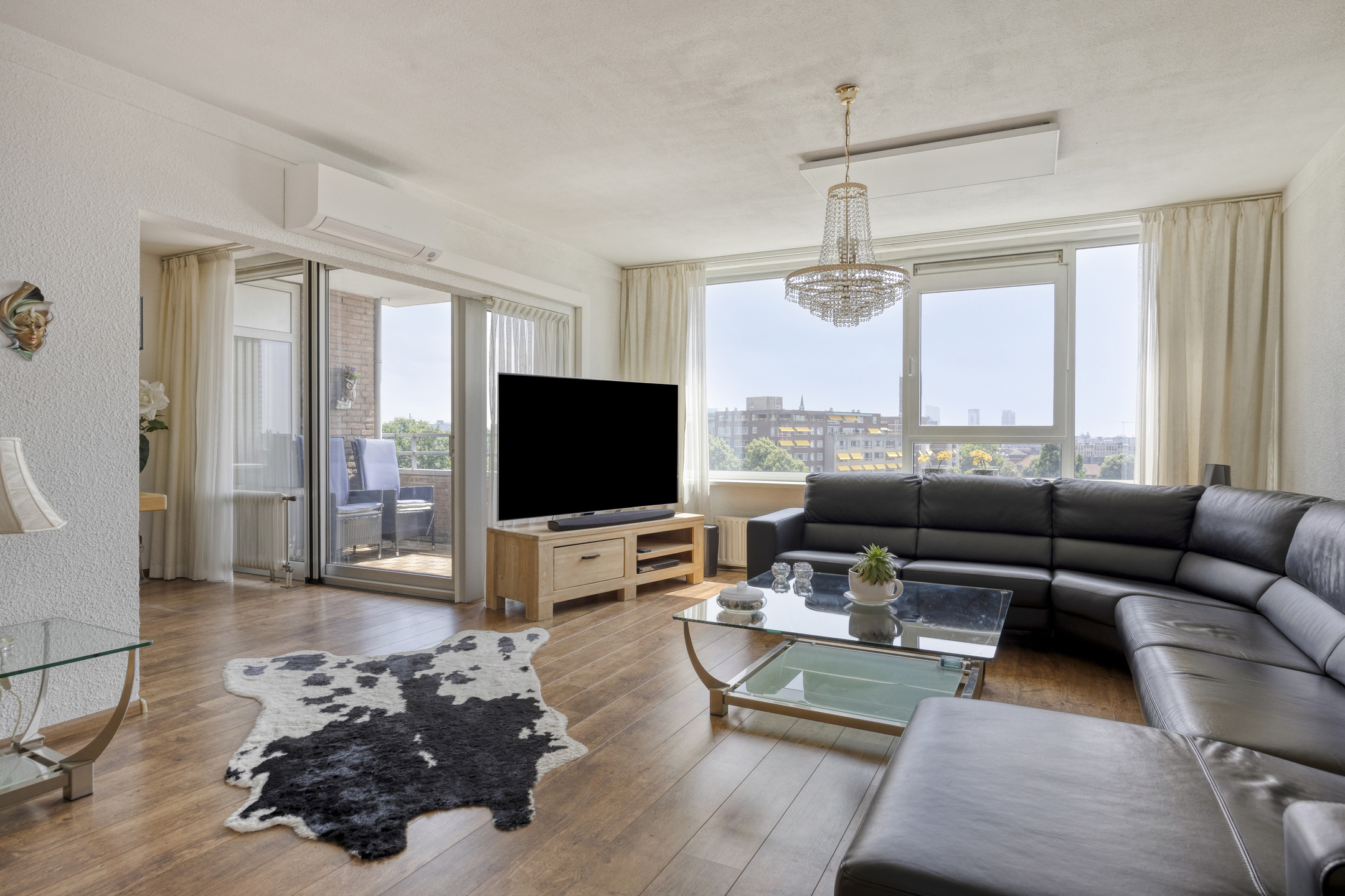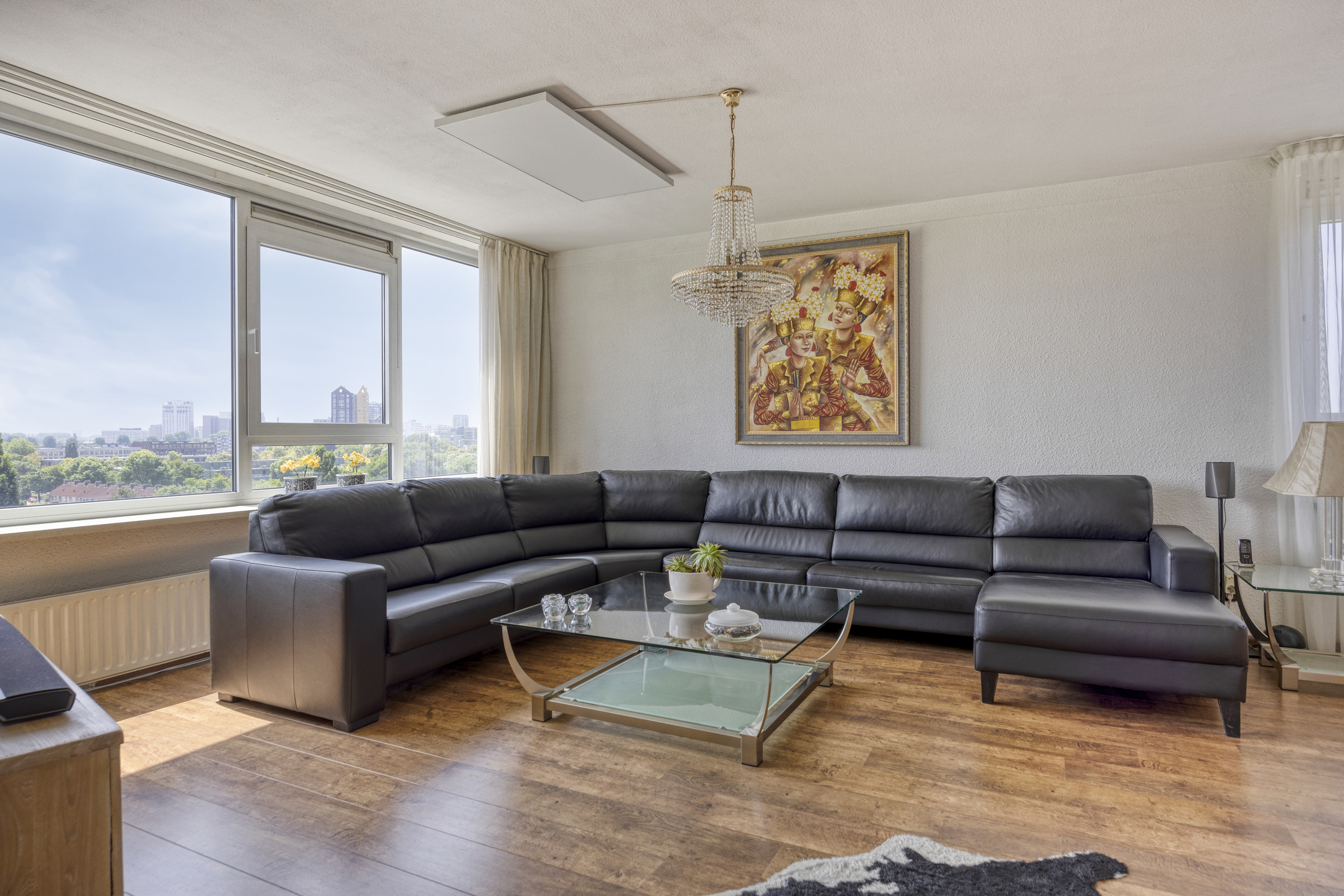 The apartment is located on the seventh floor and enjoys a beautiful view of the Eindhoven skyline.