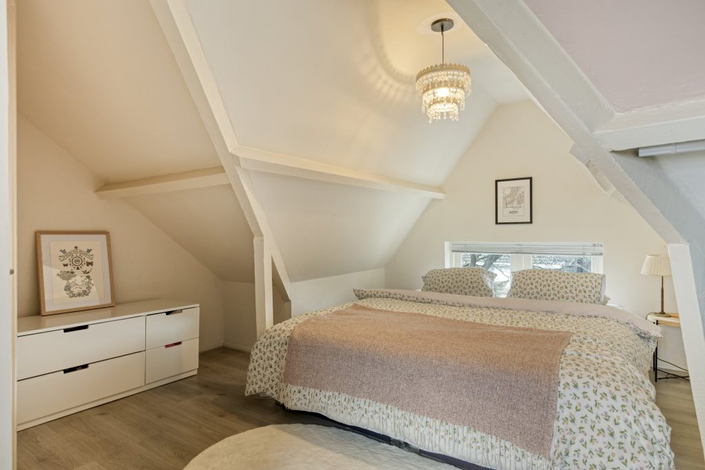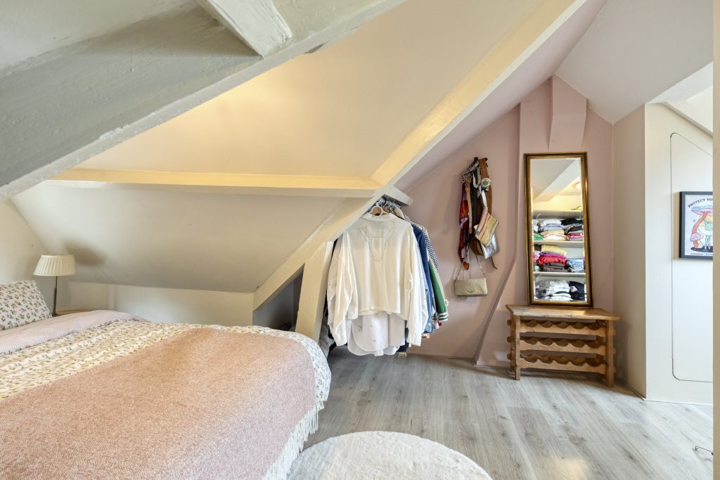 • Sfeervolle slaapverdieping: De tweede verdieping verrast met een ruime slaapkamer waar de authentieke balken nog prachtig in het zicht zijn. Inclusief een praktische walk-in closet!