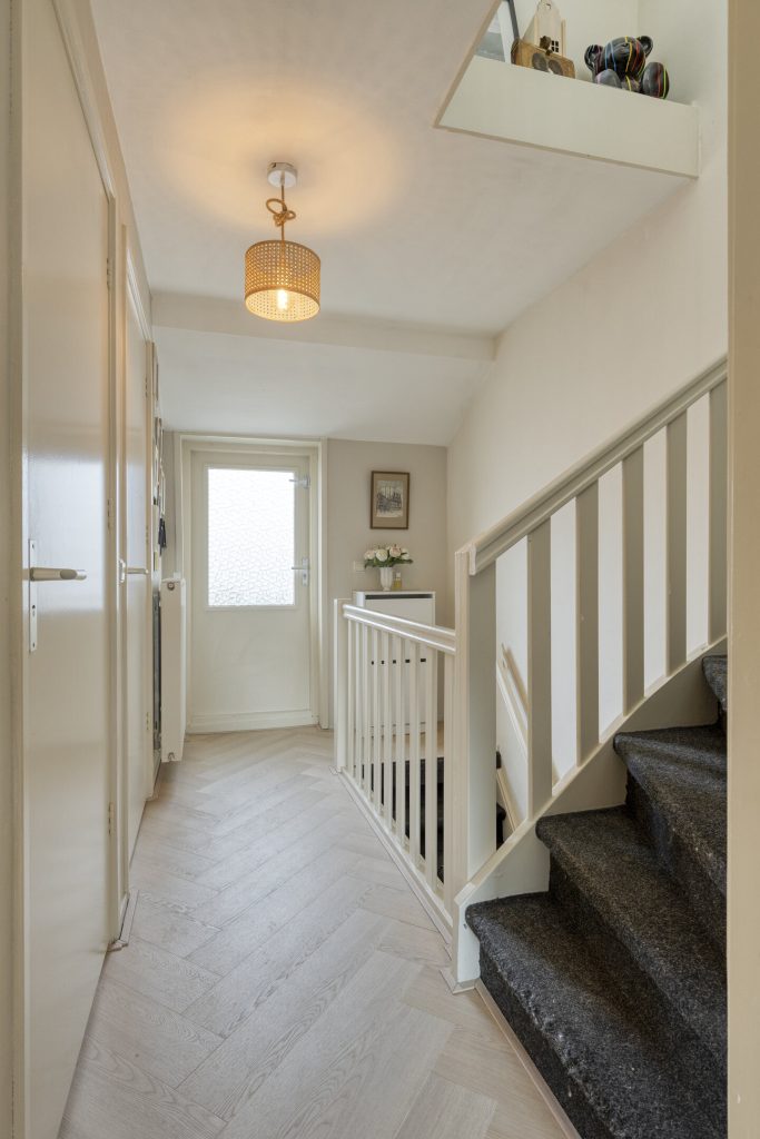 Eigen entree met hal en trapopgang. Aan de achterzijde bevindt zich een handige gemeenschappelijke berging voor fietsen en gereedschap.