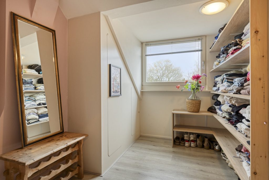 Royale slaapkamer met authentieke details, een inloopkast en extra bergruimte met de CV-opstelling.