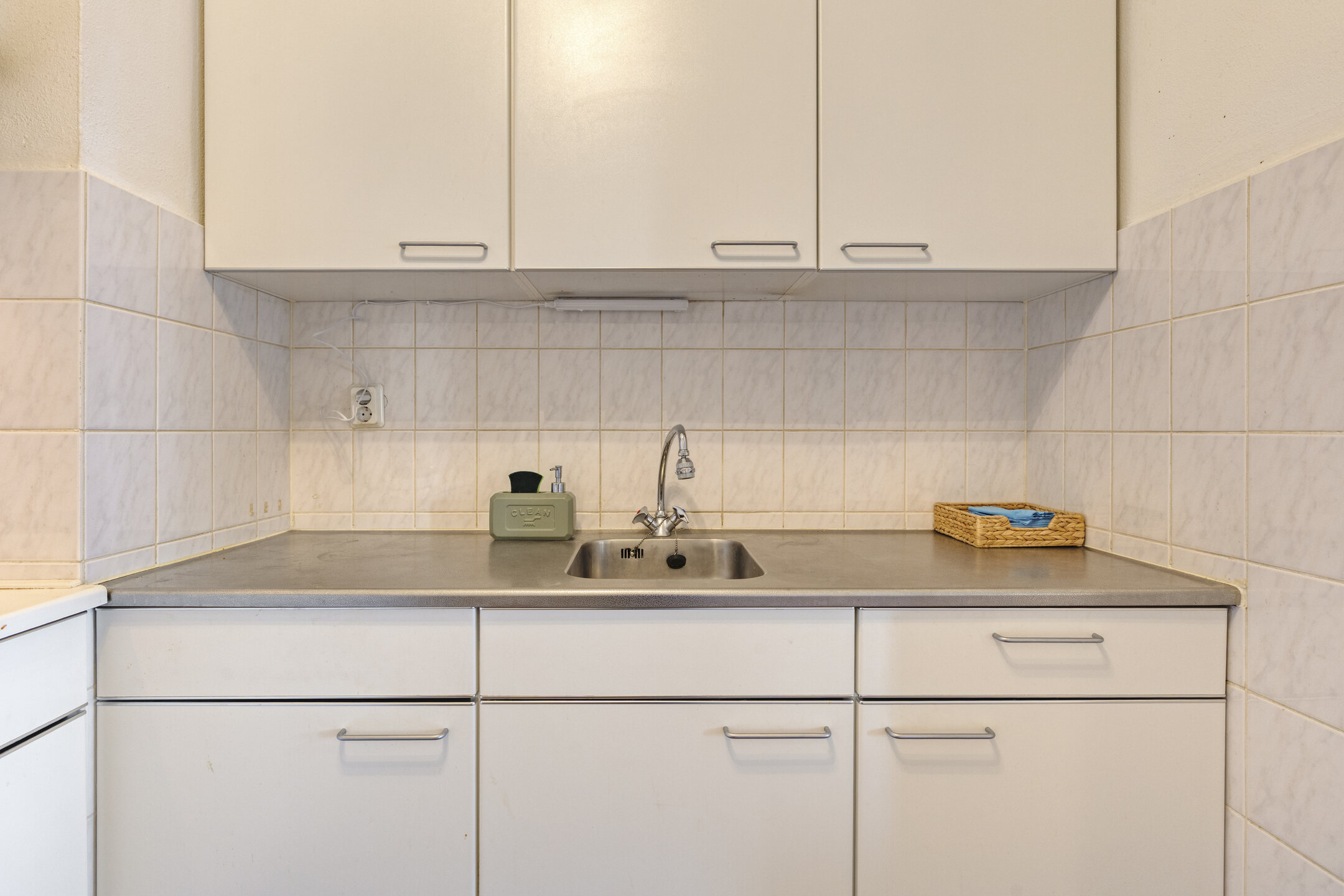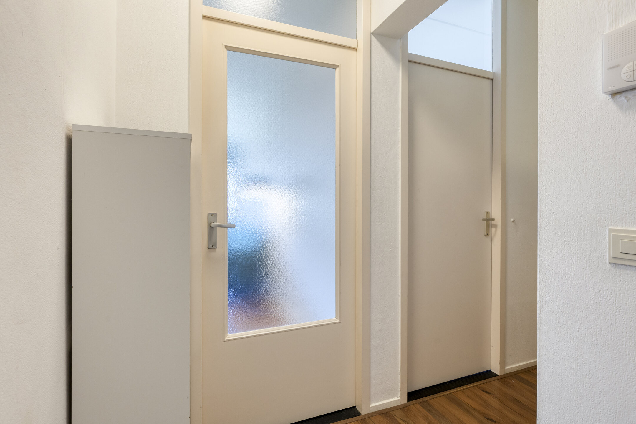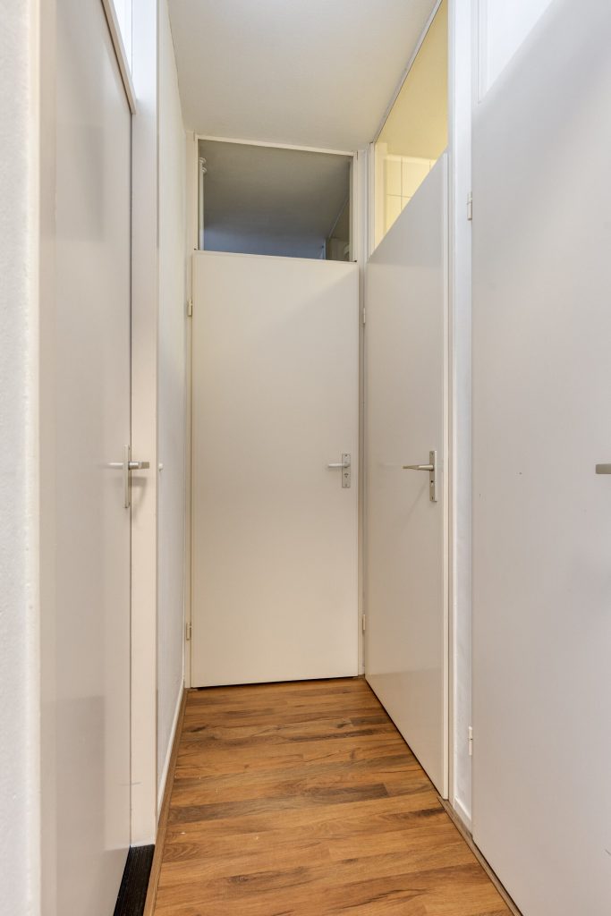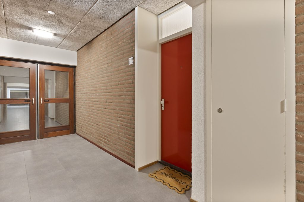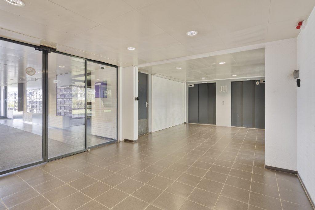 In front of the complex lies a large parking lot where you can park your car with a parking permit. It is a well-maintained building with a healthy homeowners’ association. Automatic sliding doors provide access to the central hall with an intercom and mailboxes. Everything is taken care of down to the last detail. For instance, the hallway was recently painted and a new floor was laid. Cameras have been installed in the hallway for extra security. The stairs and elevators can be reached via the hallway.