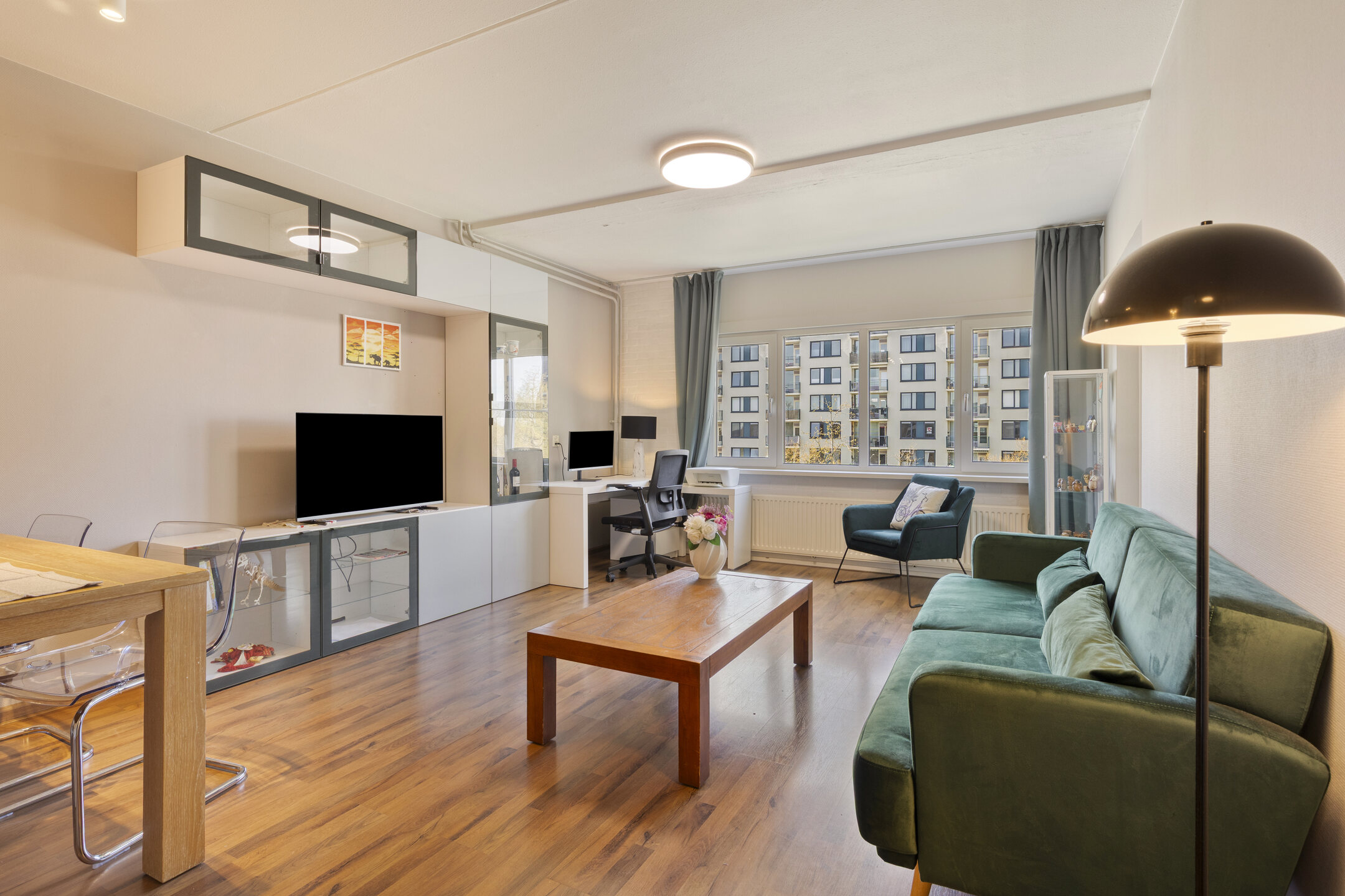 If you are looking for an affordable apartment in a super central location in Eindhoven, you have come to the right place. This practical apartment is located on the fourth floor and features a bright living room with an open kitchen, a neat bathroom, a balcony, and two storage units.