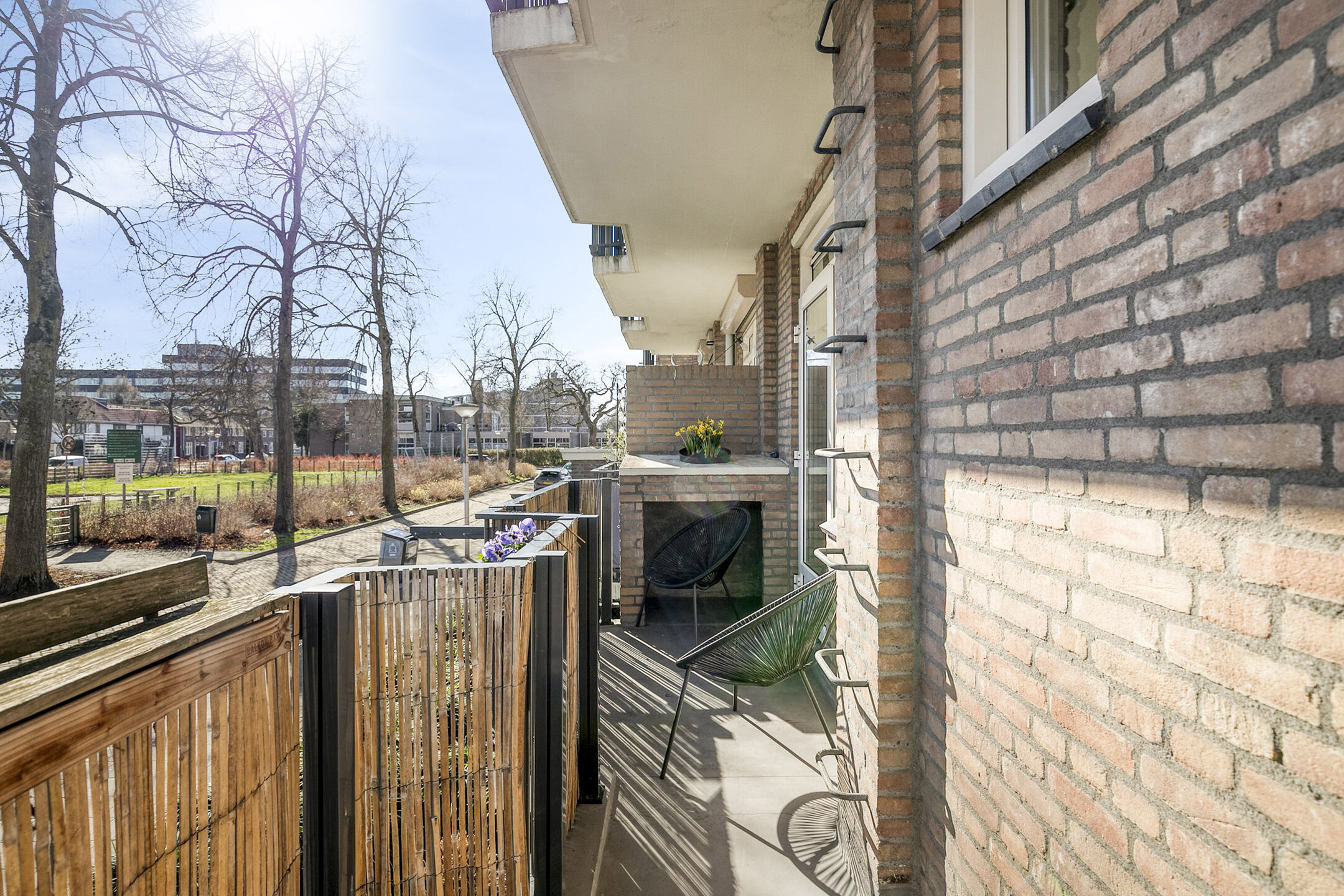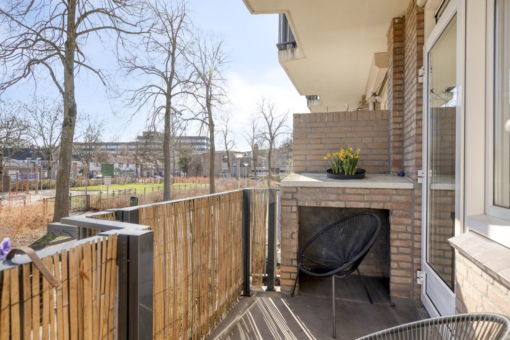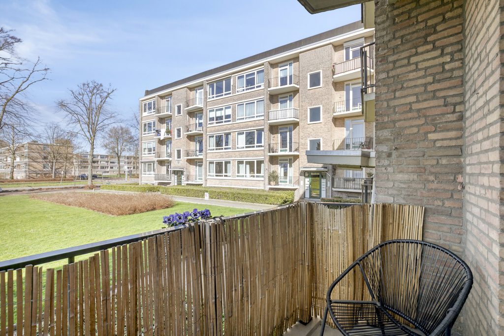 Balkon is gelegen aan de achterzijde van het complex en is gericht op het oosten. Hier kijkt men ook heerlijk uit op het groen en kun je genieten van de ochtendzon met een kopje koffie.