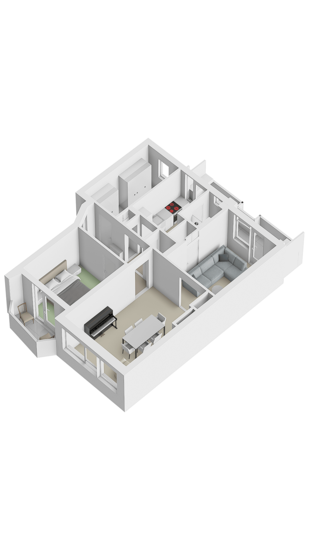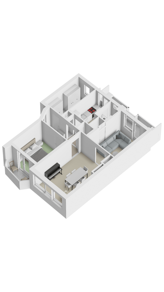 – De eetkamer kan worden afgesloten om een 3de slaap-, werk- of hobbykamer te realiseren;