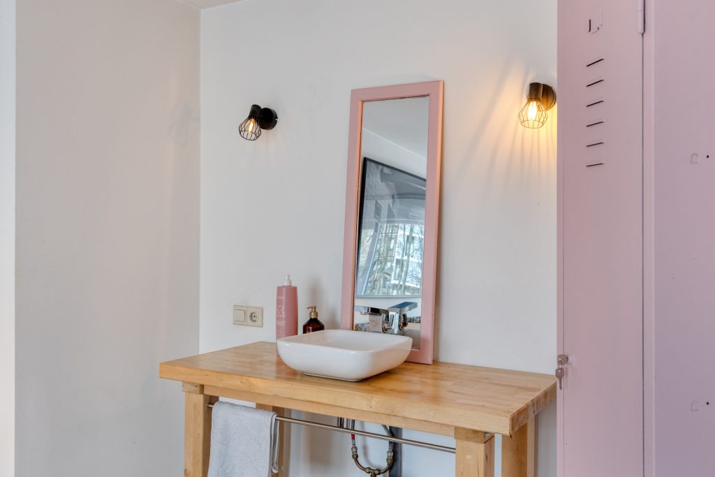 De ruime ouderslaapkamer is gelegen aan de achterzijde van de woning en is afgewerkt met een fraaie houten vloer, en een vaste wasttafel. Vanuit de slaapkamer heeft u middels een loopdeur toegang tot een nog aan te leggen dakterras.