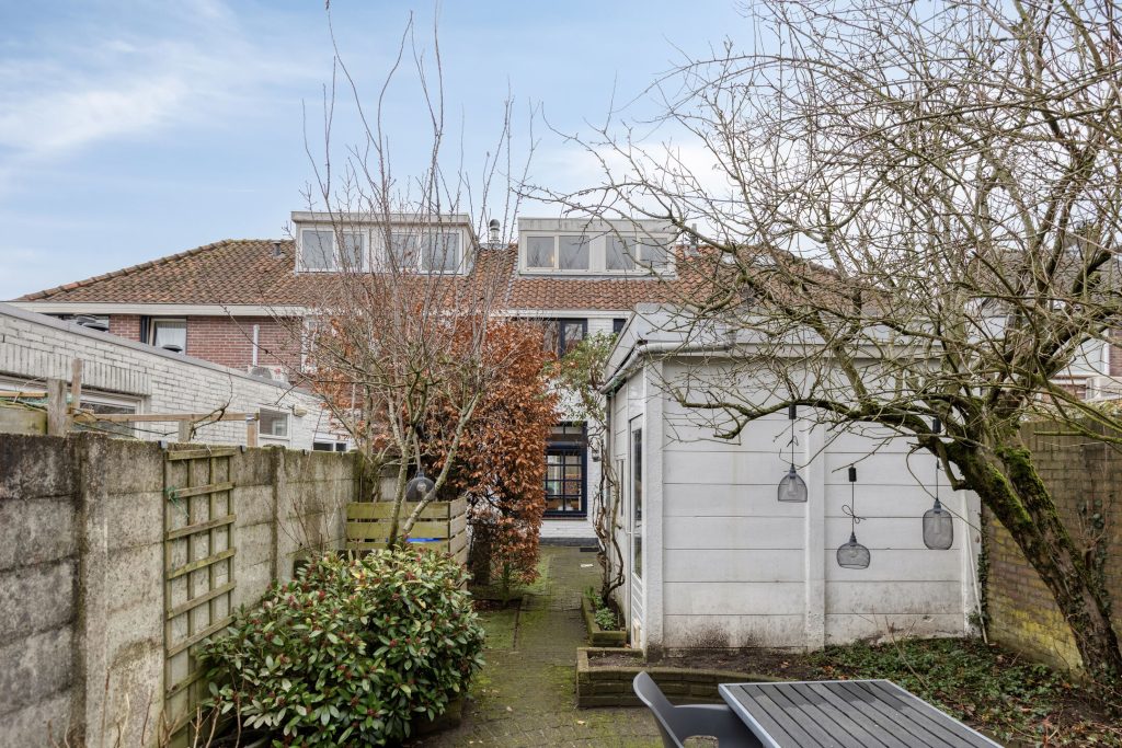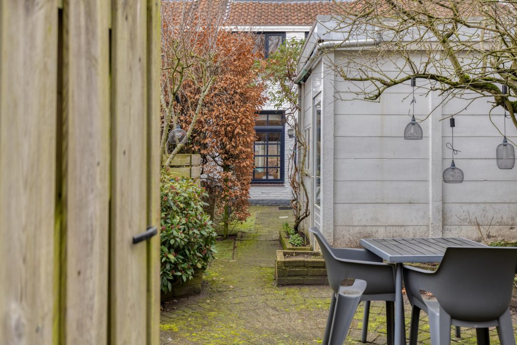 Diepe sfeervolle, achtertuin gelegen op het noordwesten met een berging. De tuin is voorzien van borders met beplantingen, terras, biedt veel privacy en een achterom. De berging beschikt over de opstelling van c.v. ketel en een bergzoldertje.