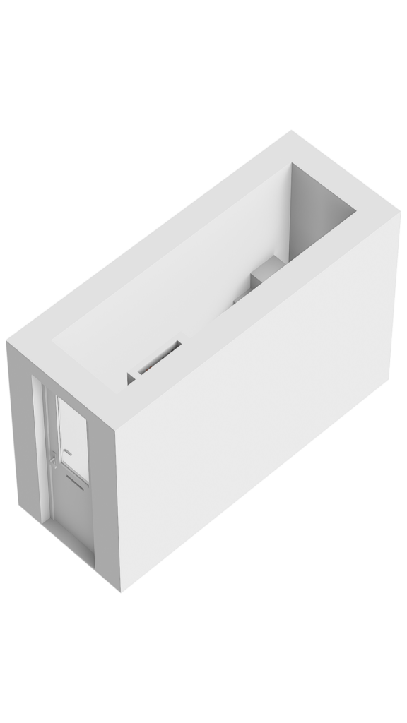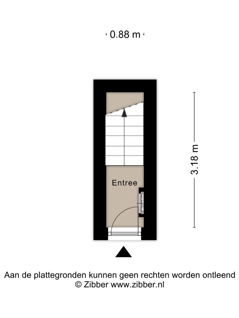 Entrance hall with meter cupboard and staircase. A path leads to the private storage room at the rear.