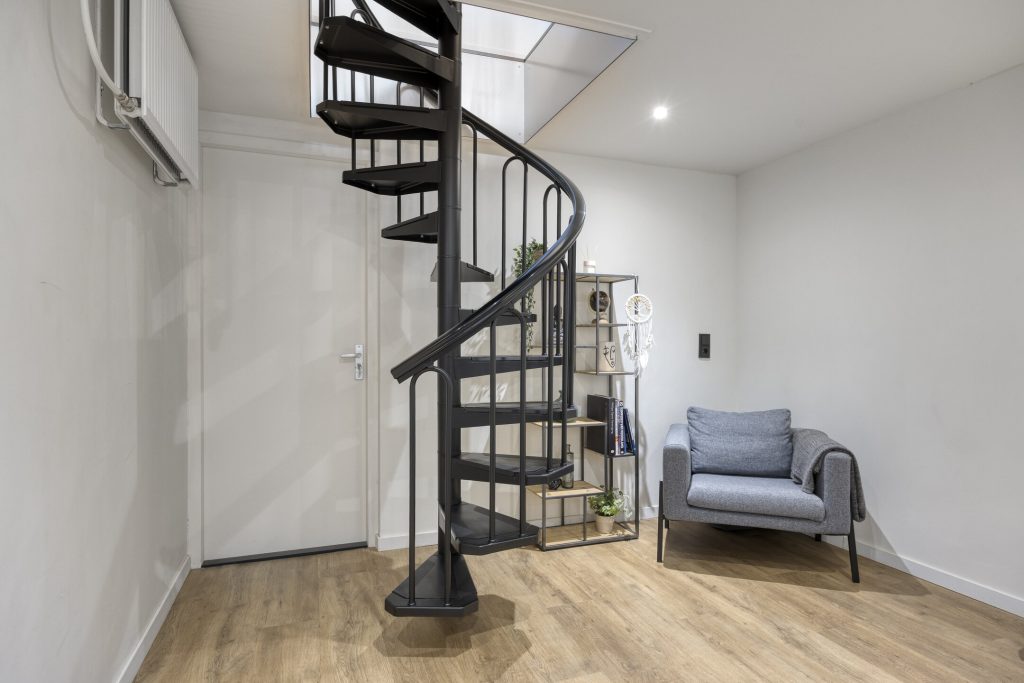 Vanuit de open keuken is er een wenteltrap geplaatst (in 2020) die toegang geeft tot het beneden gelegen souterrain.