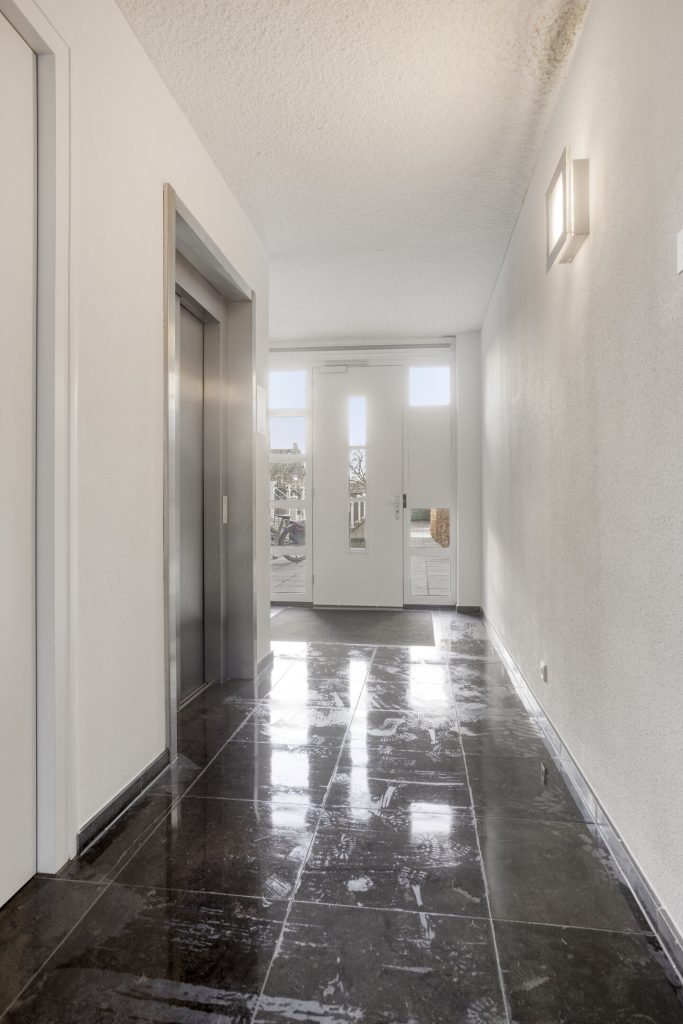 Via het gezamenlijke portaal bereik je de derde en tevens hoogste verdieping van het complex.