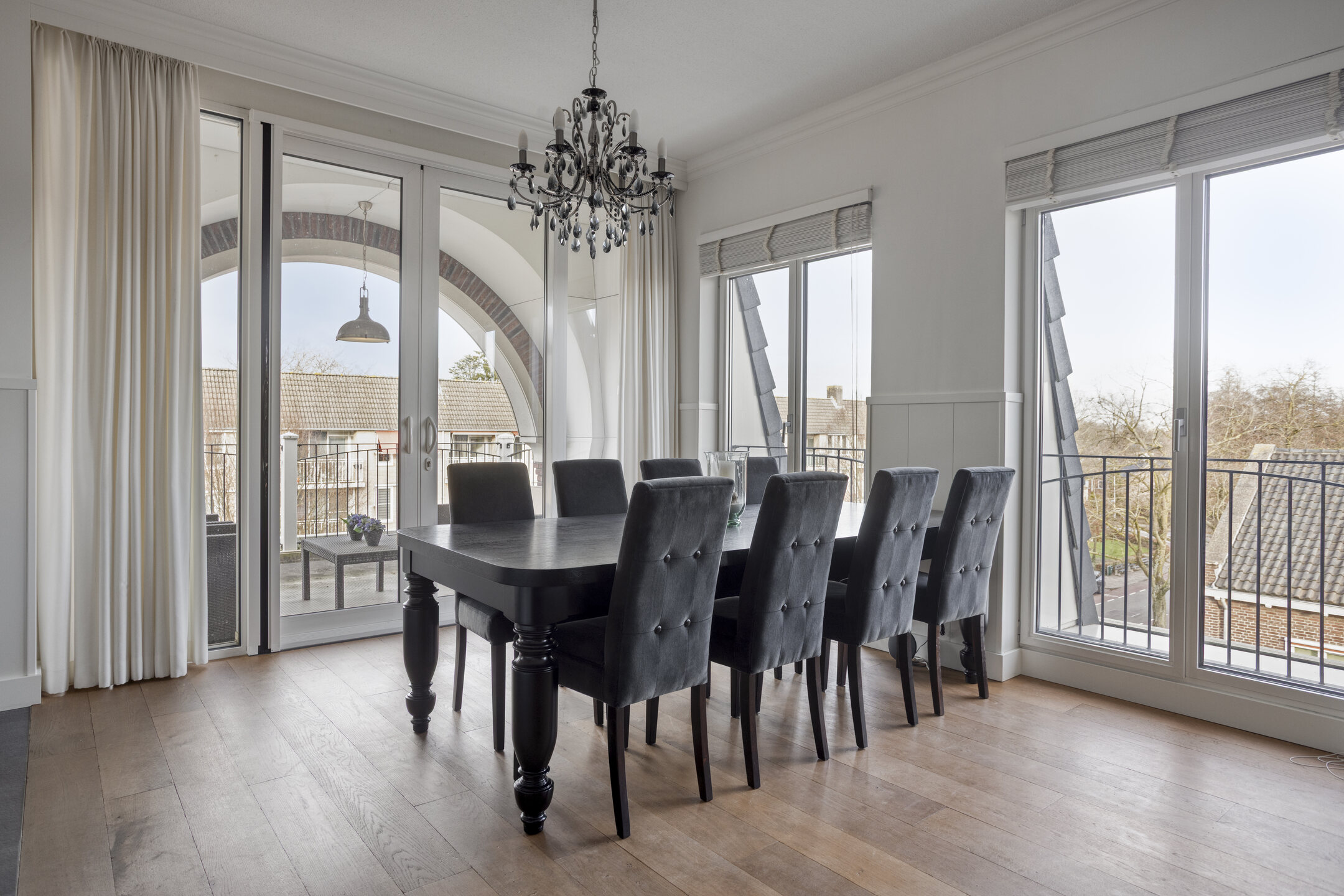 The balcony offers plenty of space for a lounge area and a table.