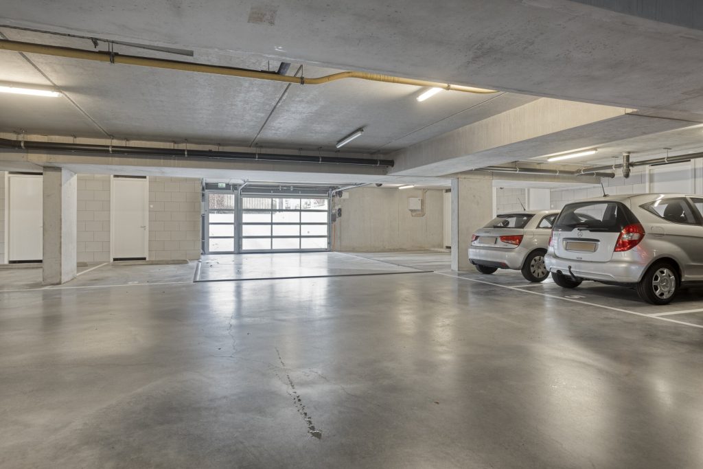 Underneath the complex is a lockable underground parking garage, accessible by car or bicycle from the side of the building. You can also reach the basement by elevator from the apartment. There is a private parking space with a storage unit.