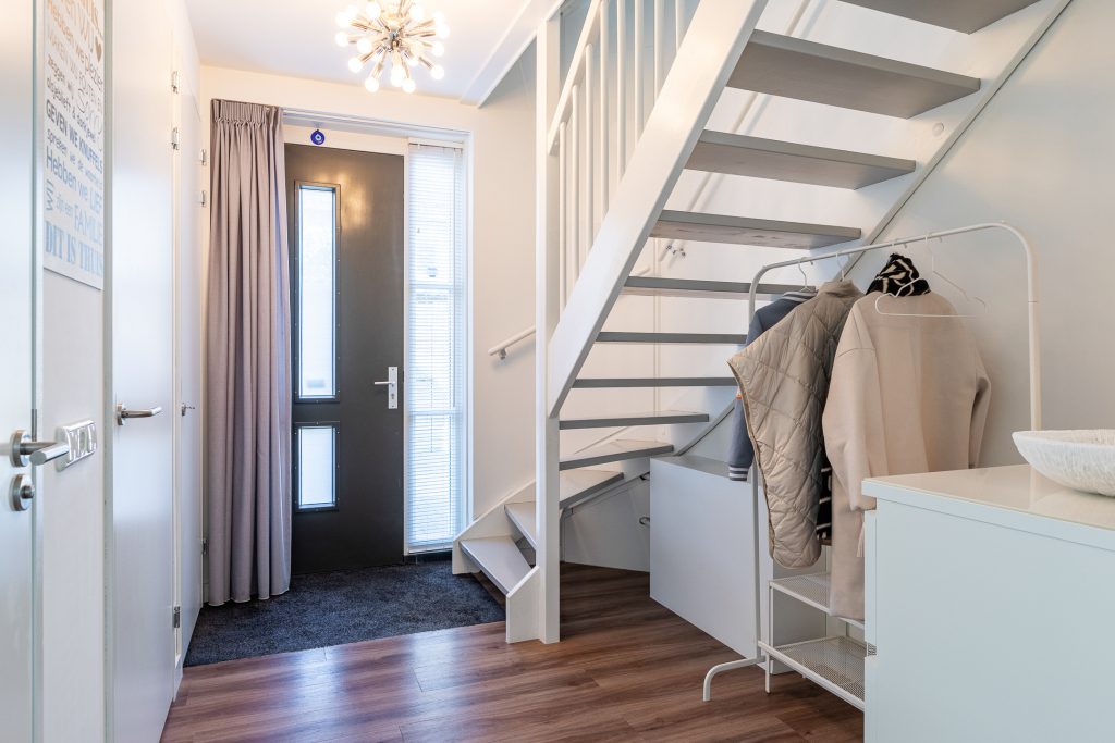 Via de ruime oprit met plek voor meerdere auto’s bereik je de entree van de woning. In de royale hal bevinden zich de trapopgang naar de eerste verdieping, de hedendaagse toiletruimte, een stook-/technische ruimte met de opstelling van de warmtepomp en de meterkast.