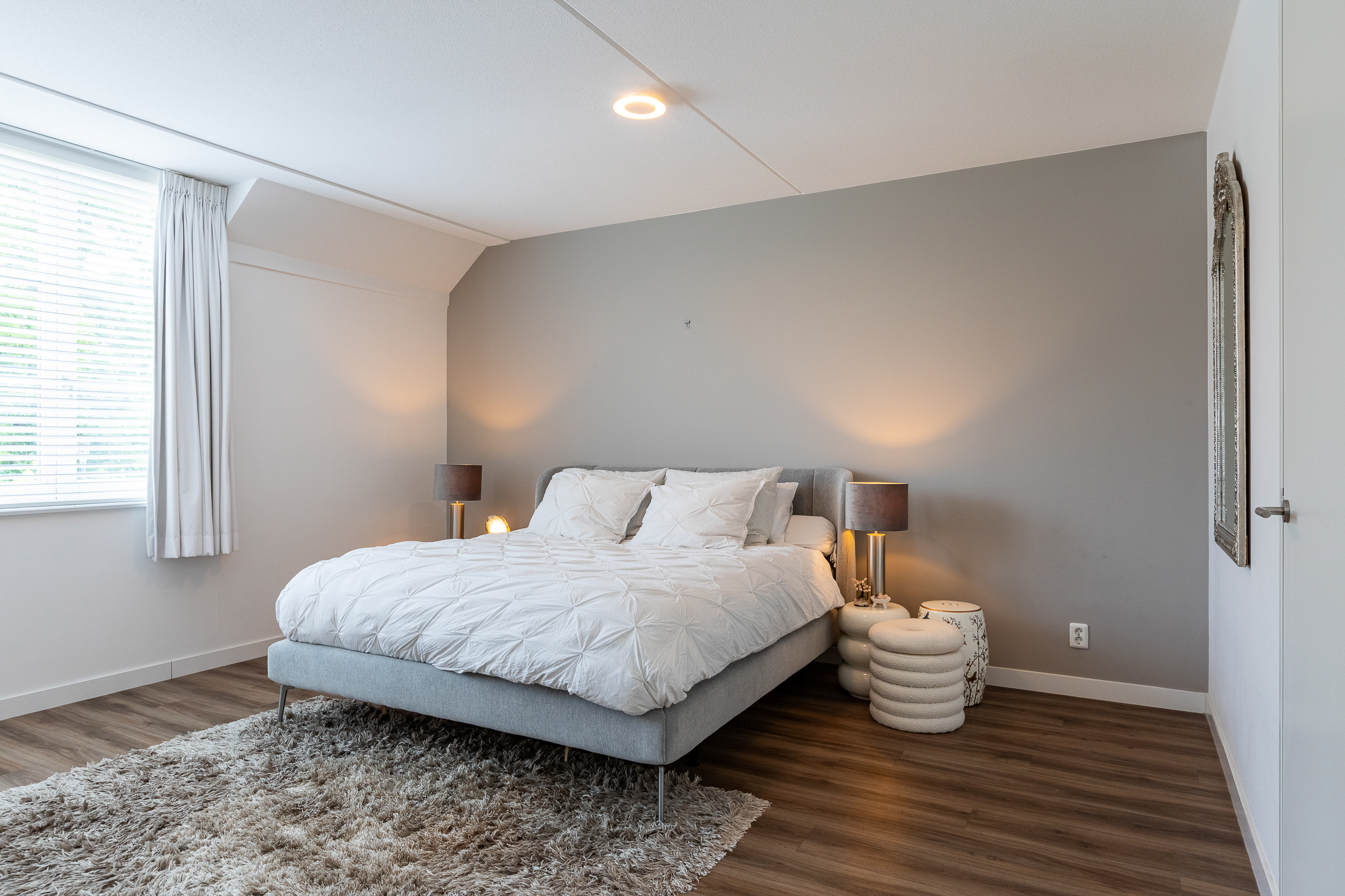 De ruime overloop biedt toegang tot alle vertrekken en de trapopgang naar de tweede verdieping. Aan de voorzijde vind je de ruime (hoofd)slaapkamer, oorspronkelijk ontworpen als twee kamers. Aan de achterzijde bevindt zich de tweede slaapkamer, eveneens royaal van formaat.