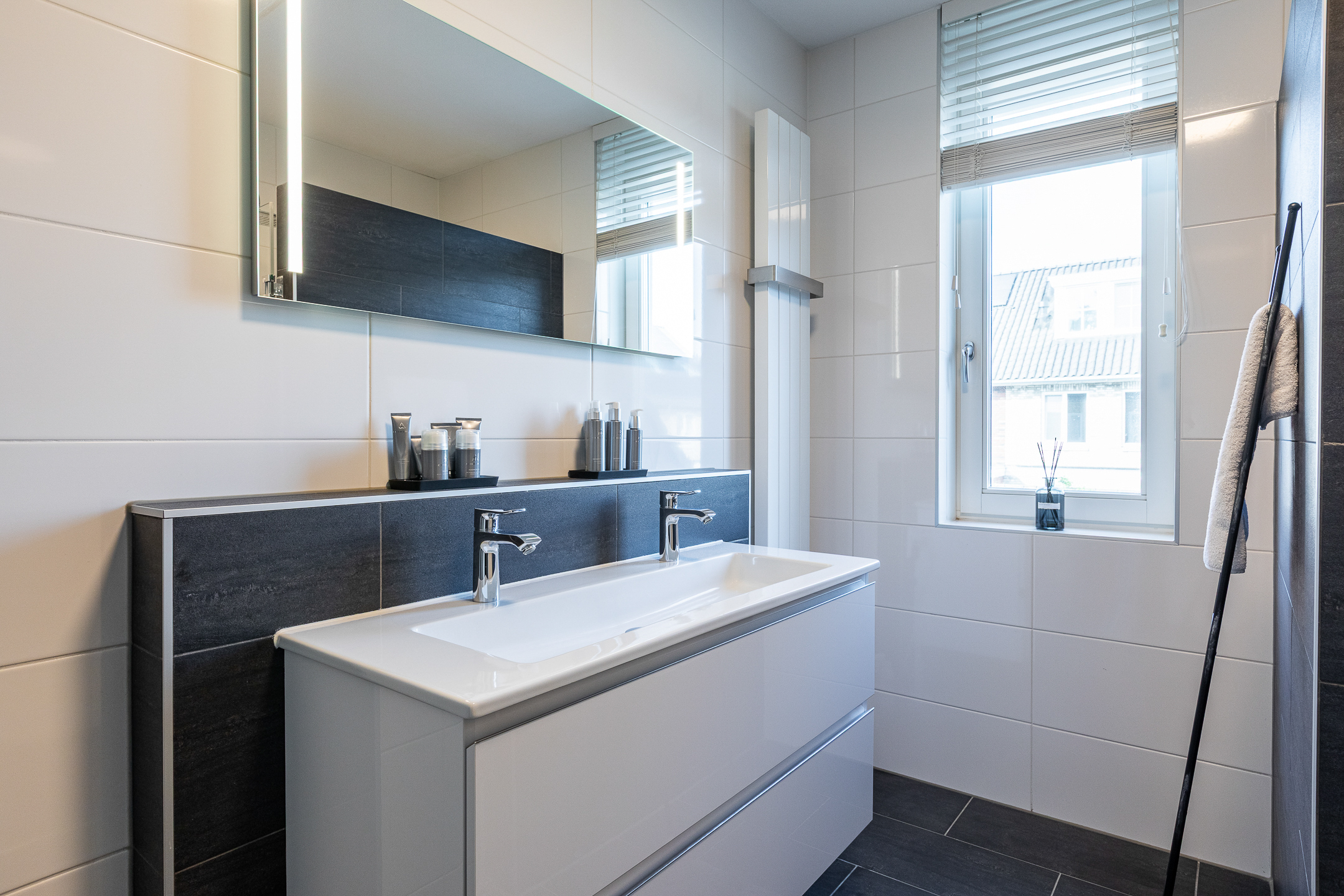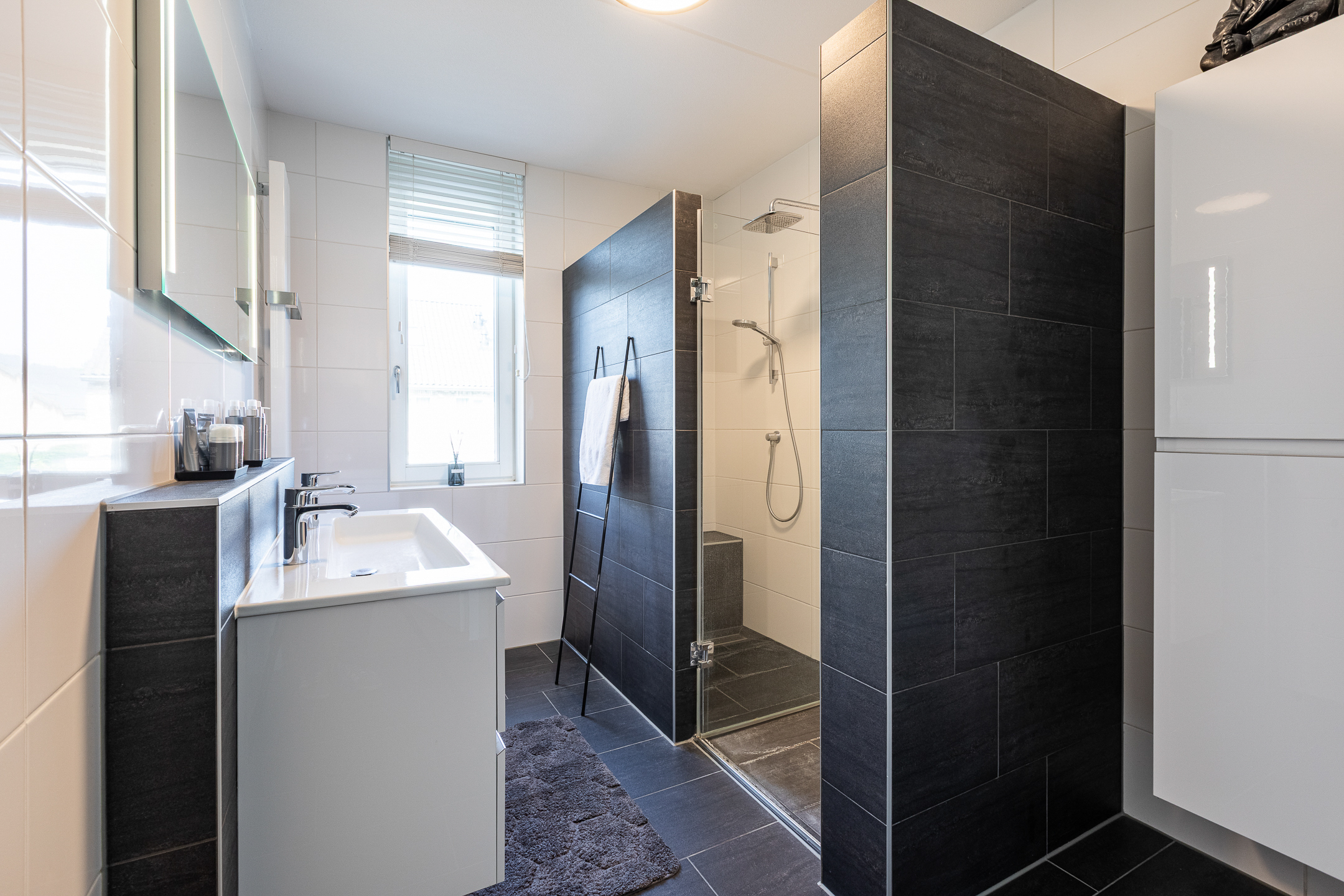 De badkamer is modern en ruim, met een inloopdouche, een fraai wastafelmeubel met dubbele waskommen en hedendaagse afwerking. Een separate toiletruimte is eveneens aanwezig. De ruimte op deze verdieping is zodanig dat het eenvoudig mogelijk is om een derde slaapkamer te realiseren.