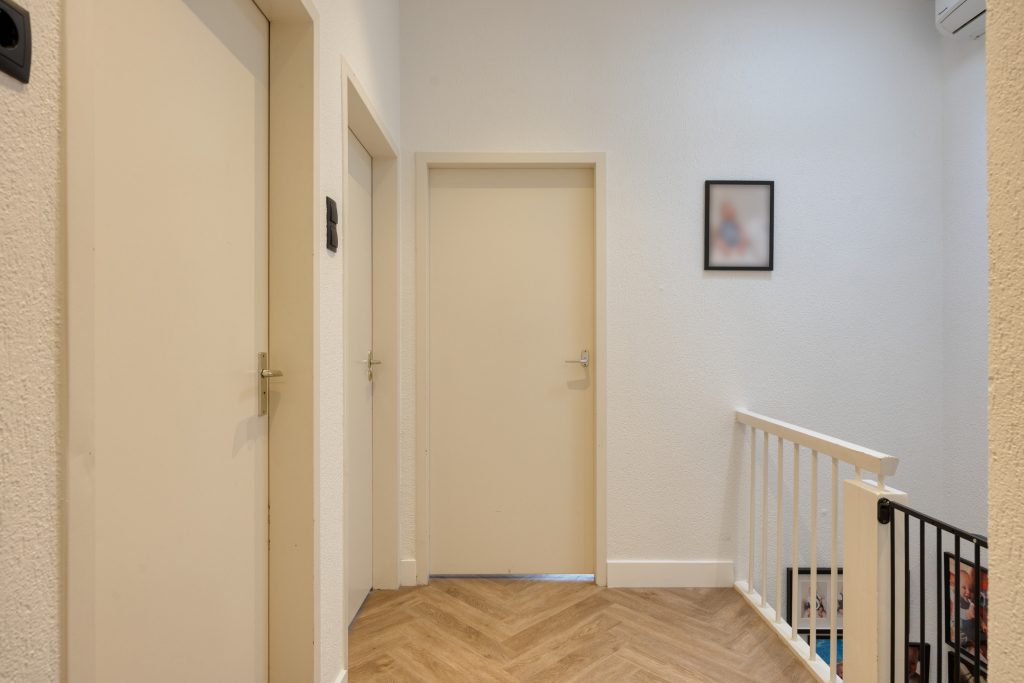 Ruime overloop met lichtkoepel geeft toegang tot toilet, badkamer en 4 Slaapkamers. De gehele verdieping is voorzien van een pvc visgraatvloer en airconditioning.