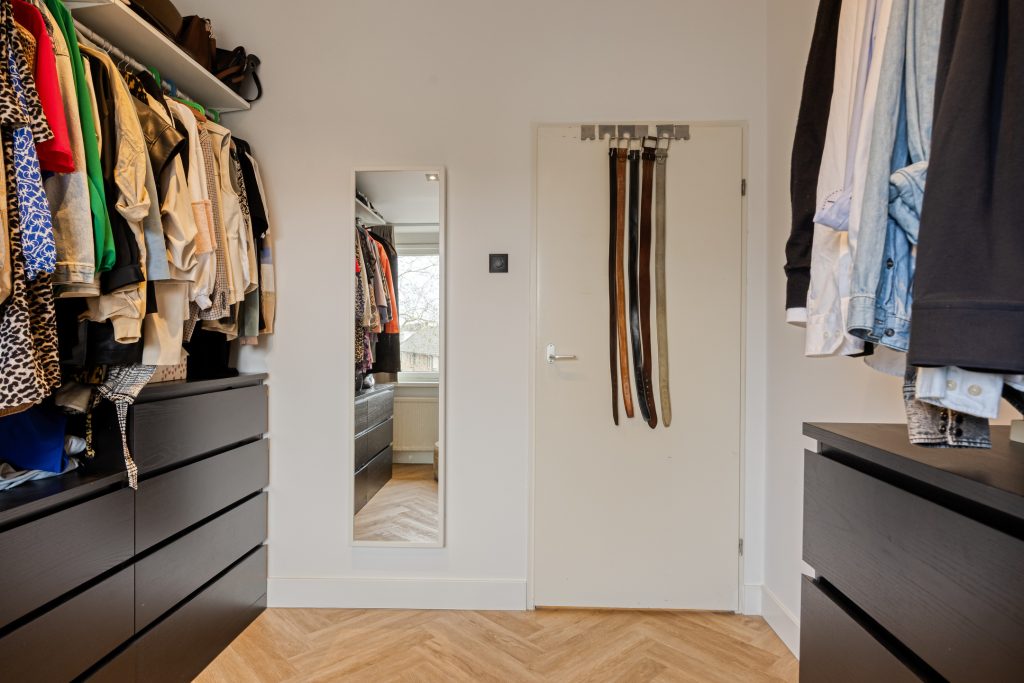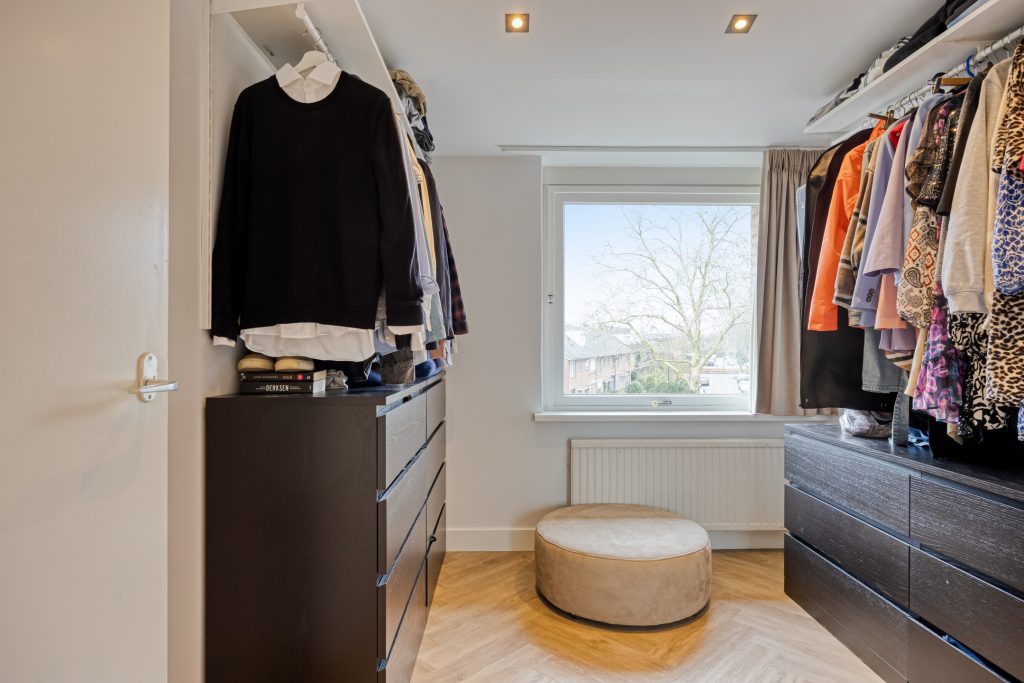 Slaapkamer 1 is gelegen aan de voorzijde en nu in gebruik als kleding/kastenkamer.