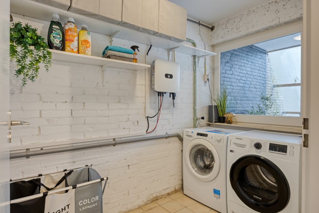 Tweede zeer ruime bergruimte met raam, is voorzien van de aansluiting ten behoeve van wasmachine en droger en hier is tevens de omvormer ten behoeve van de zonnepanelen geplaatst (2024).