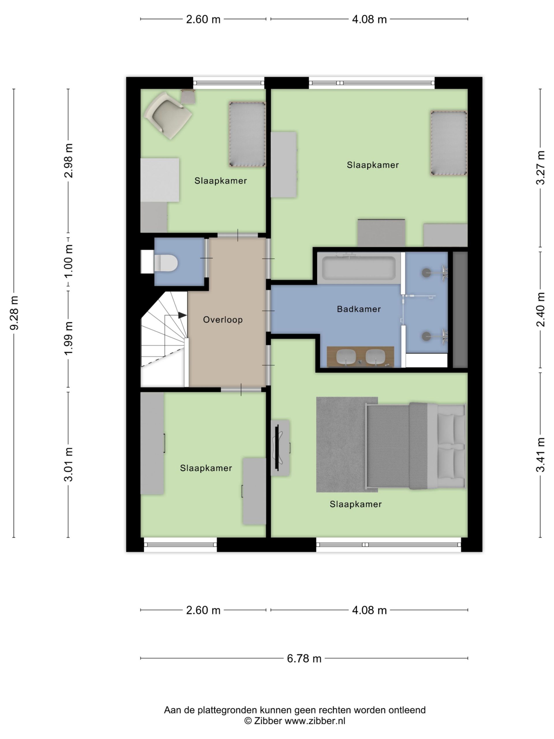 Slaapkamer 3 en 4 zijn aan de achterzijde gelegen en beschikken over handbediende rolluiken.