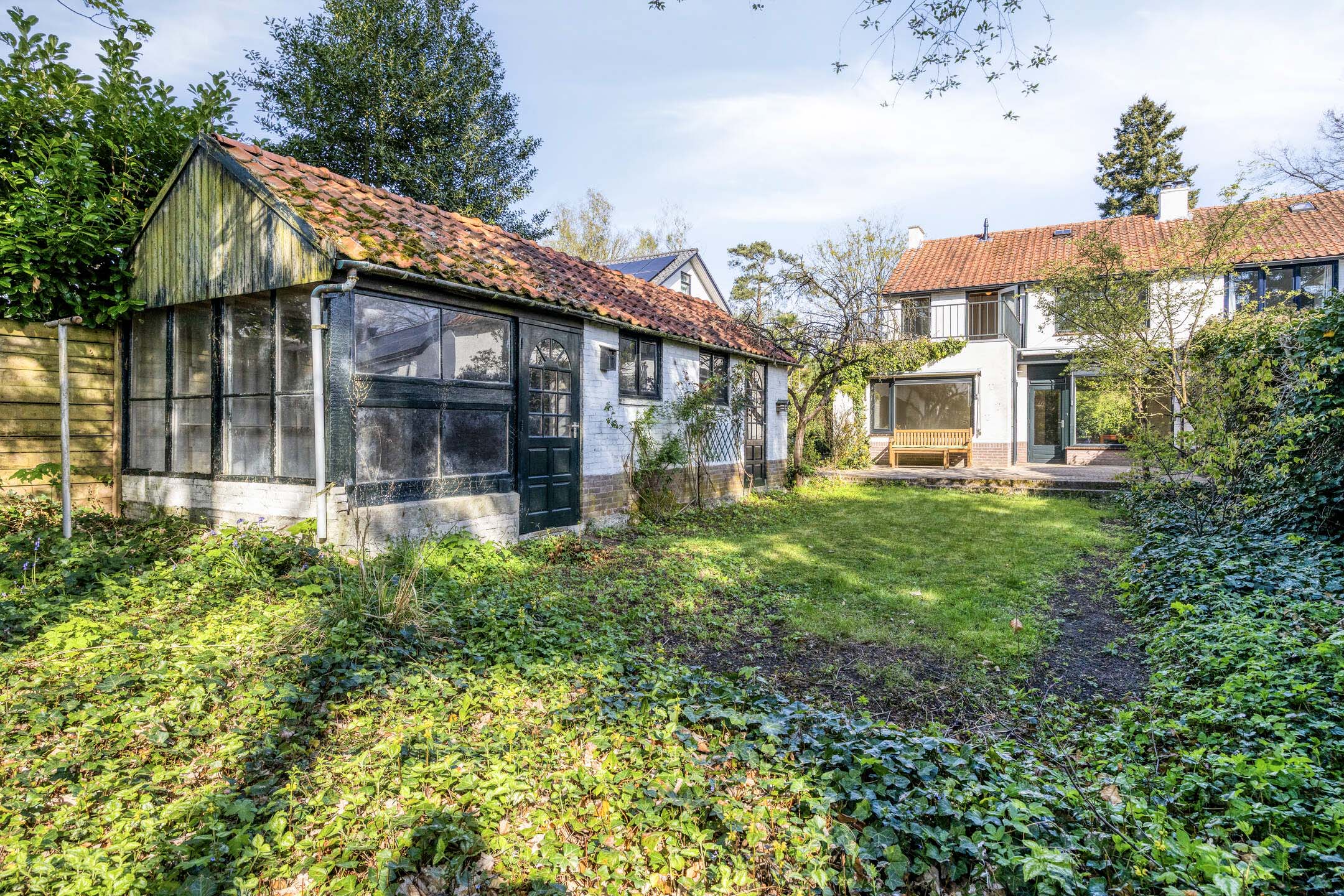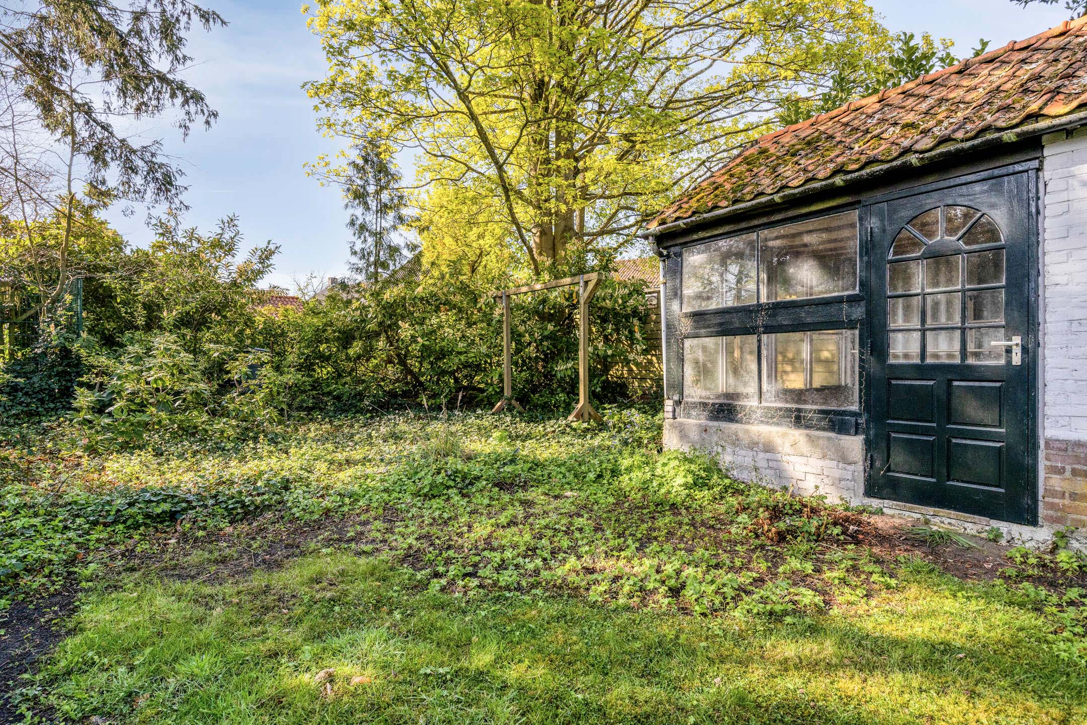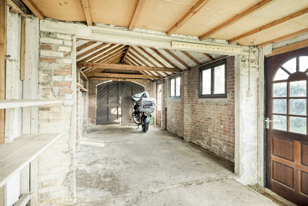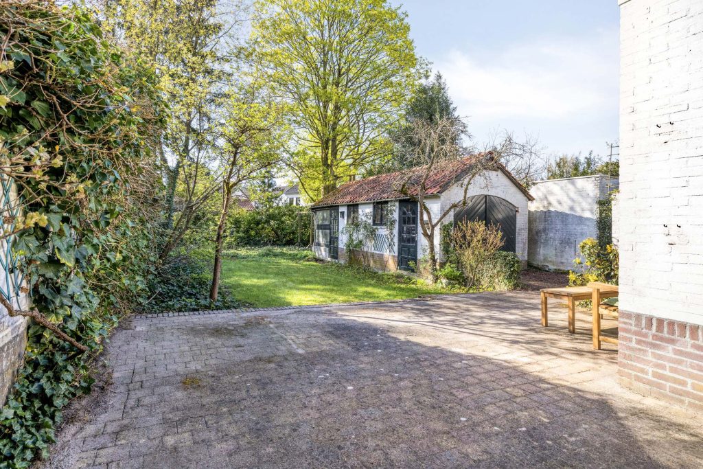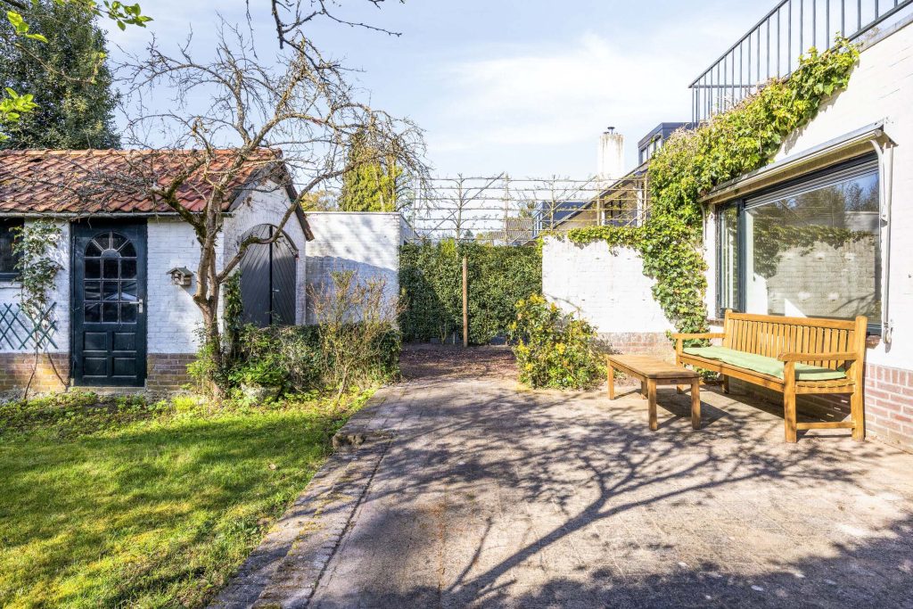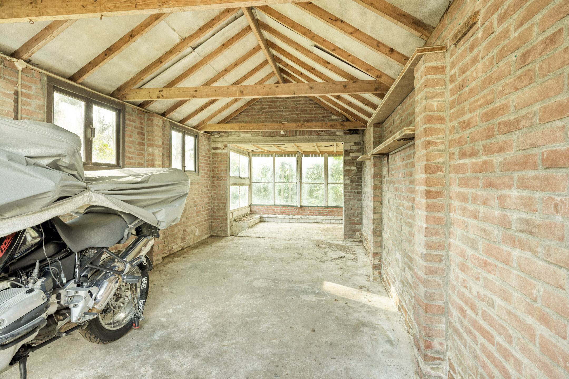 Aan de achterzijde van de garage bevindt zich een aparte berging voor het opslaan van tuingereedschap.