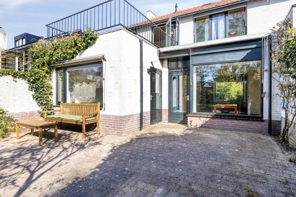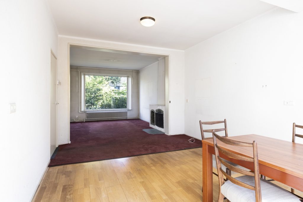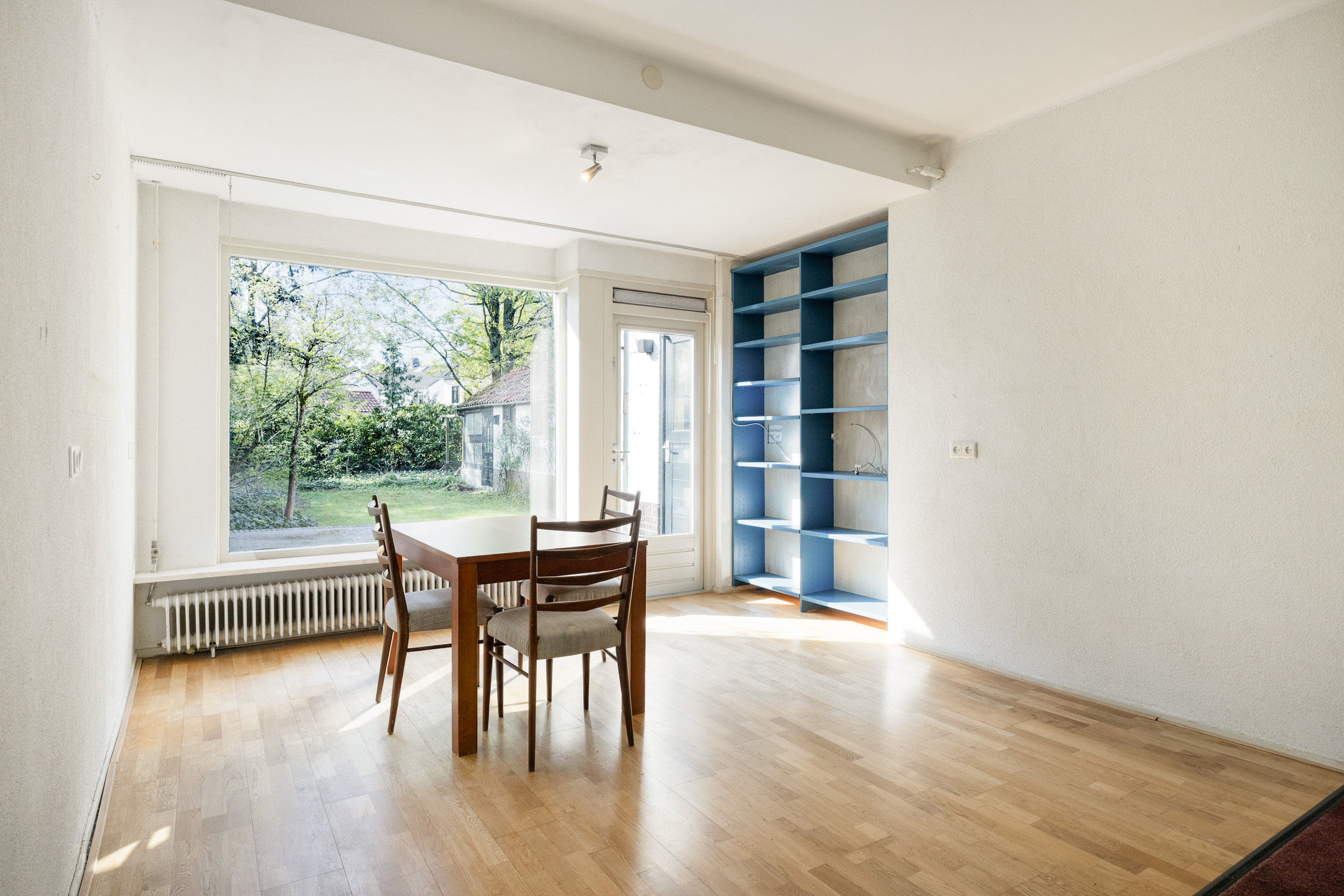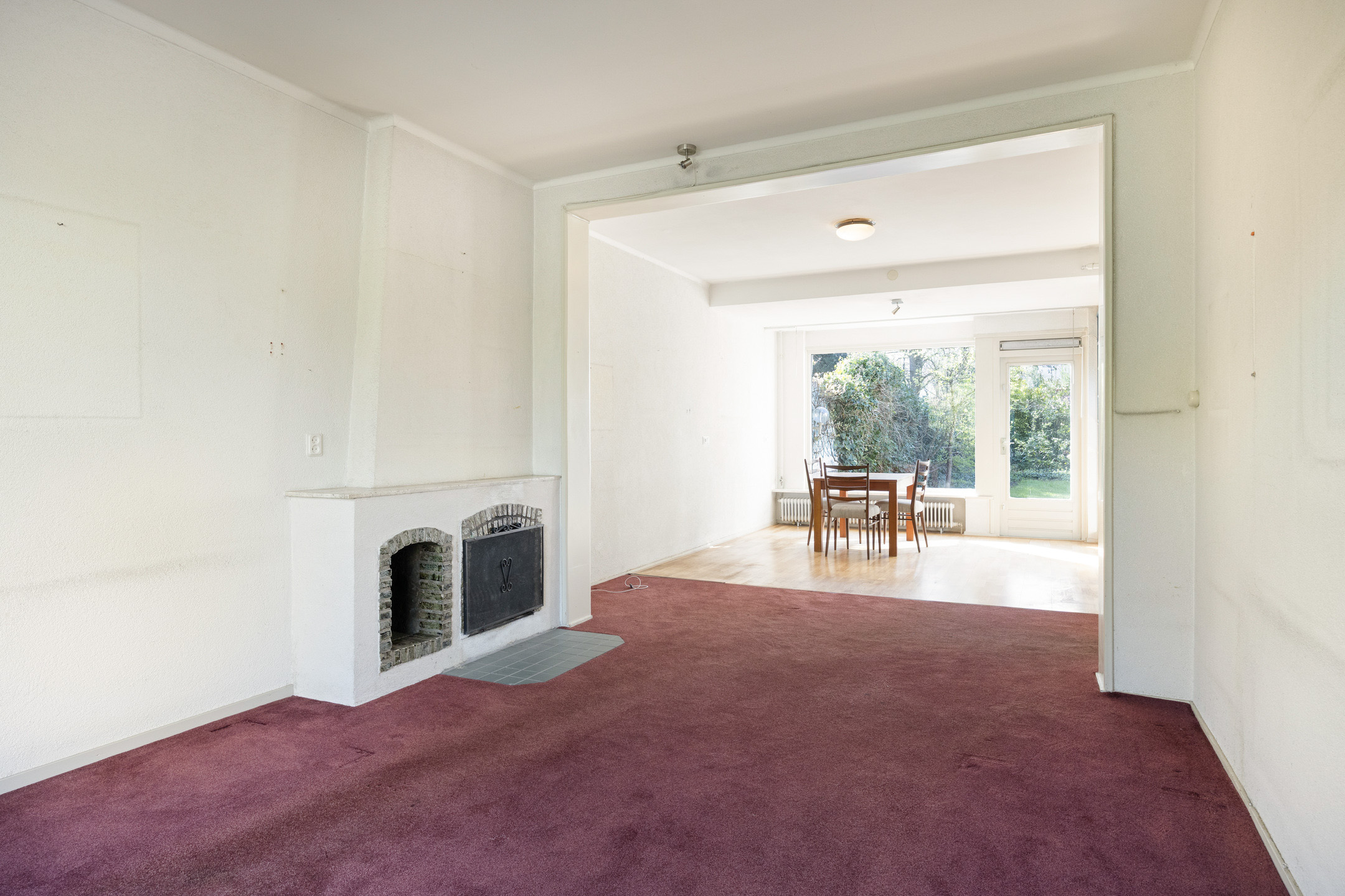 De royale doorzonwoonkamer heeft een sfeervolle openhaardpartij, een prachtige lichtinval en fijn uitzicht op de tuin door de grote ramen. Een deur biedt vanuit de kamer toegang naar een zonneterras en de achtertuin.