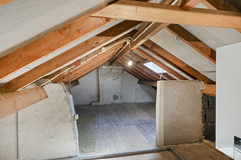 Spacious storage attic accessible via a fixed staircase. The central heating boiler is located here.