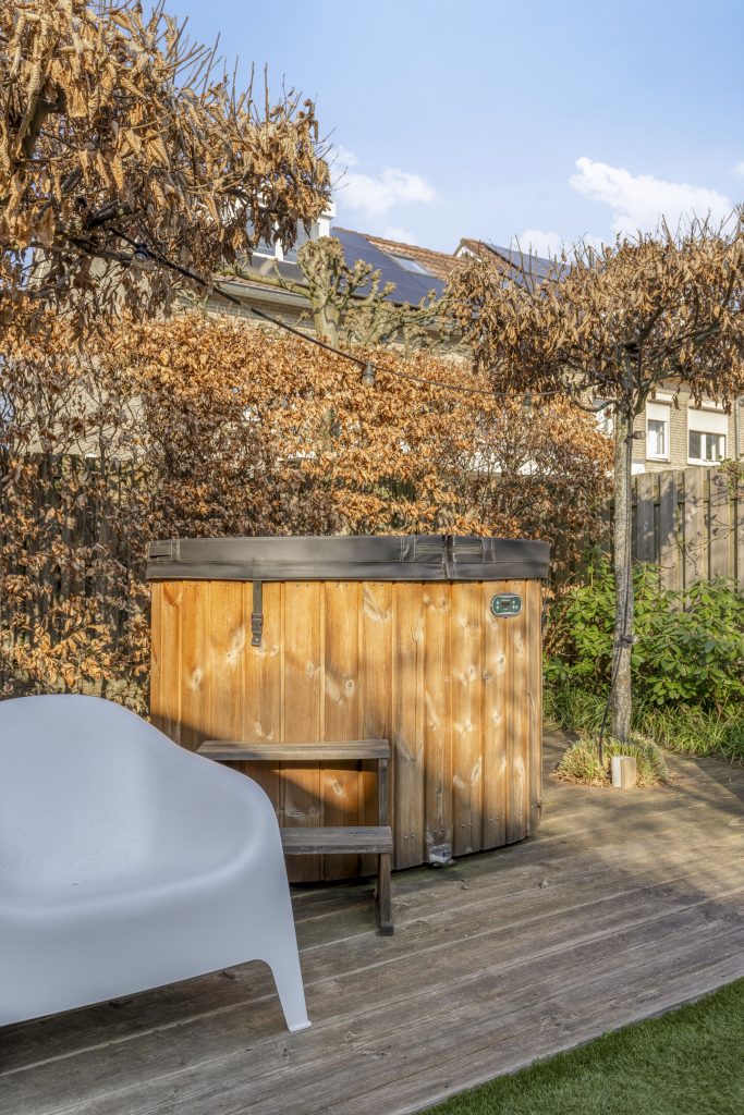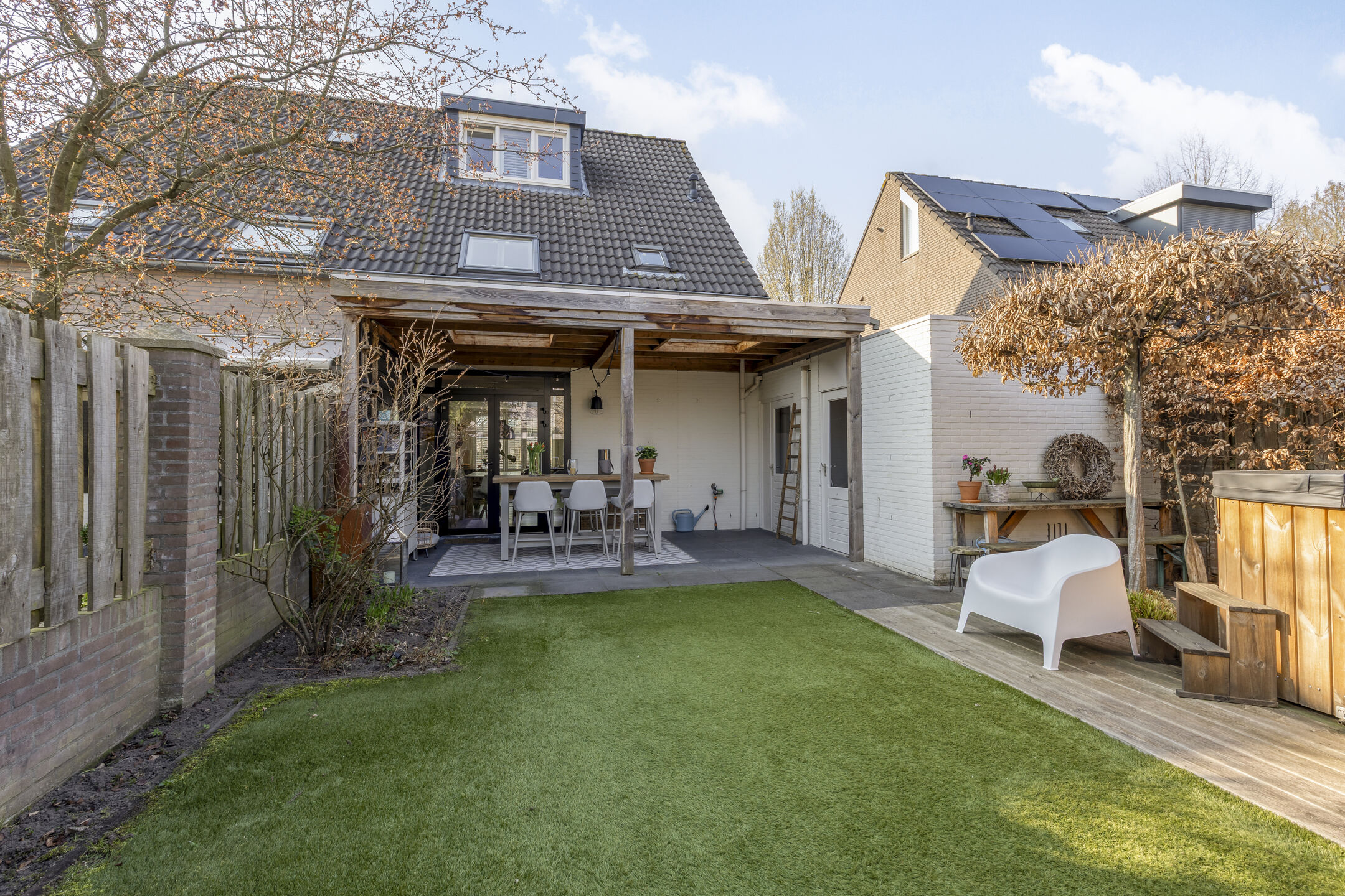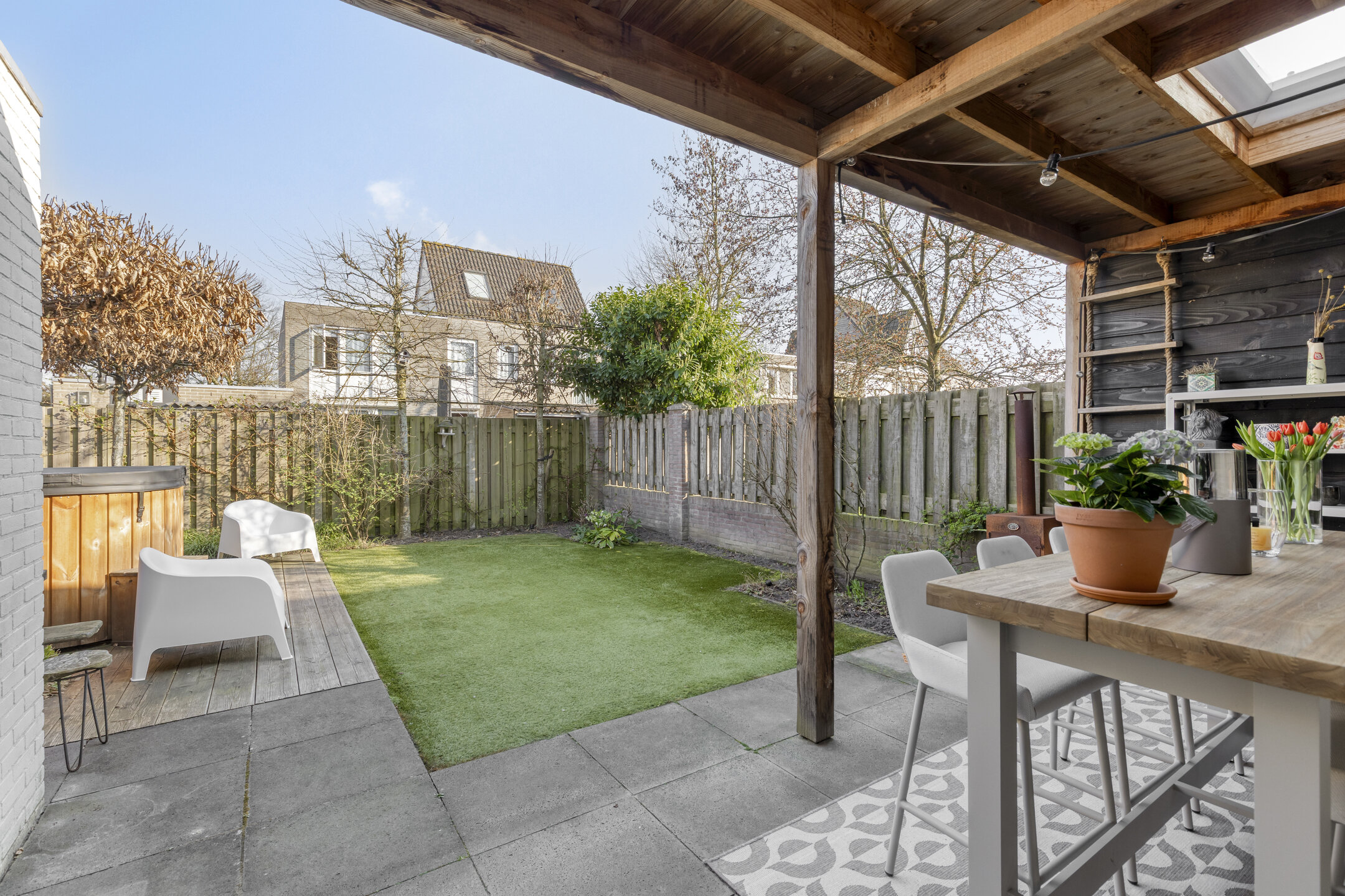 Front garden with private driveway in front of the garage. Fully enclosed, private rear garden on the east side featuring various terraces, a covered terrace, an artificial grass lawn, perennial planting, and a hot tub (available for takeover). There is a spot to be found everywhere in the garden where you can enjoy the sun. Including the setting sun! Storage room with electricity. Garage with electricity and an up-and-over door.