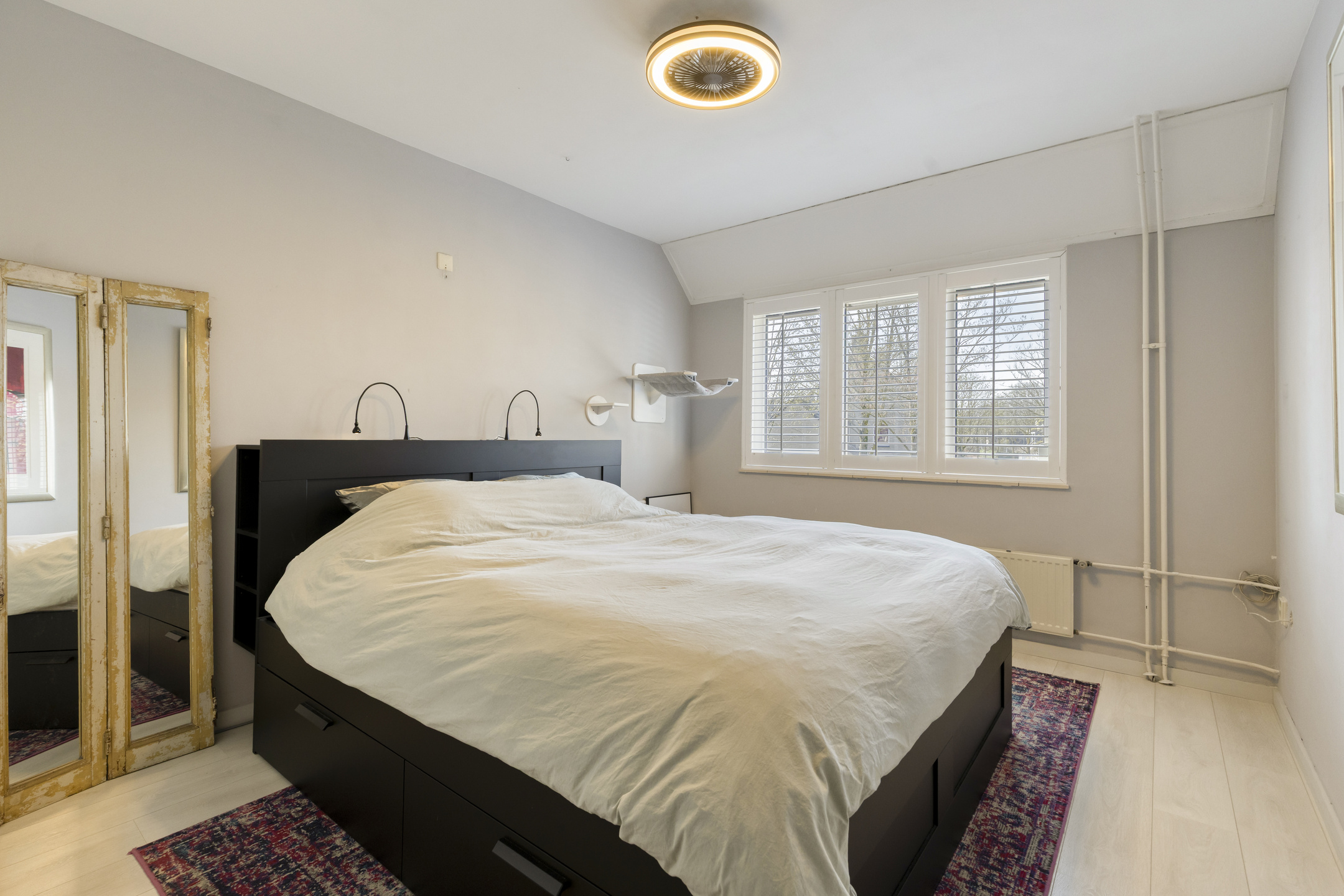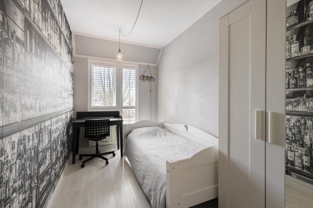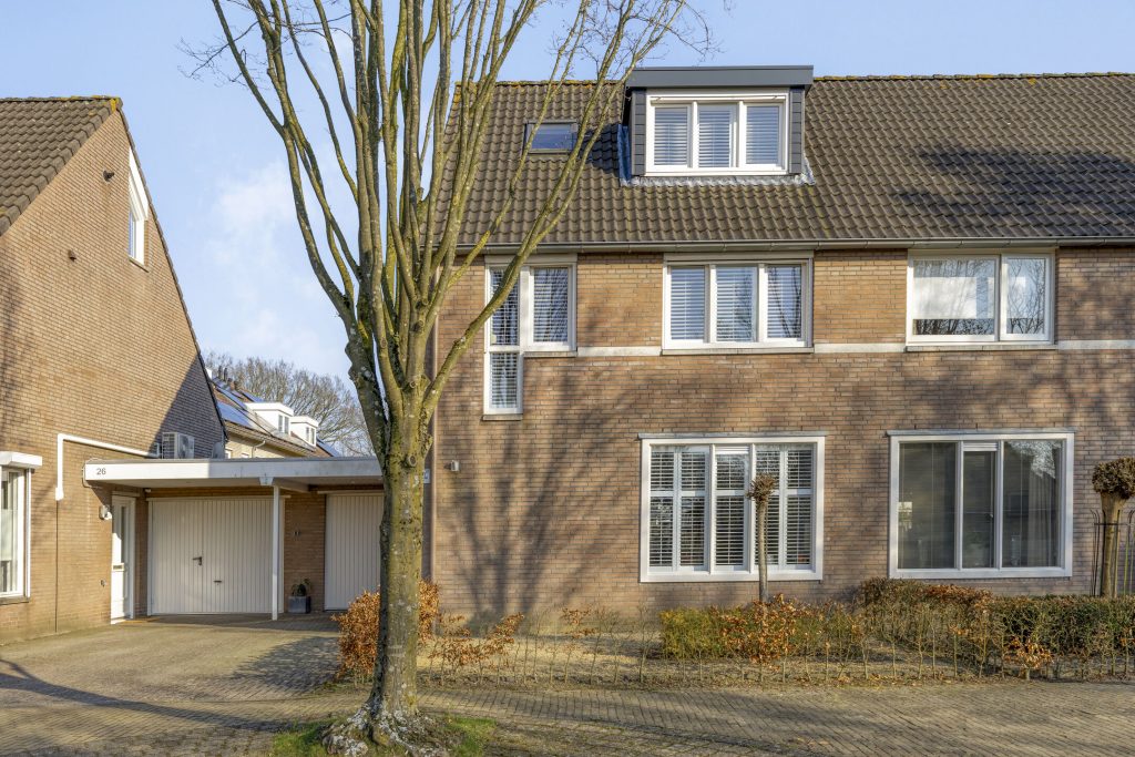 This spacious, move-in ready semi-detached house is situated on a quiet lane, on a private plot of 207 m2, and features 4 bedrooms, a spacious bathroom, a beautifully landscaped garden with a cozy covered terrace, and a garage and storage room.