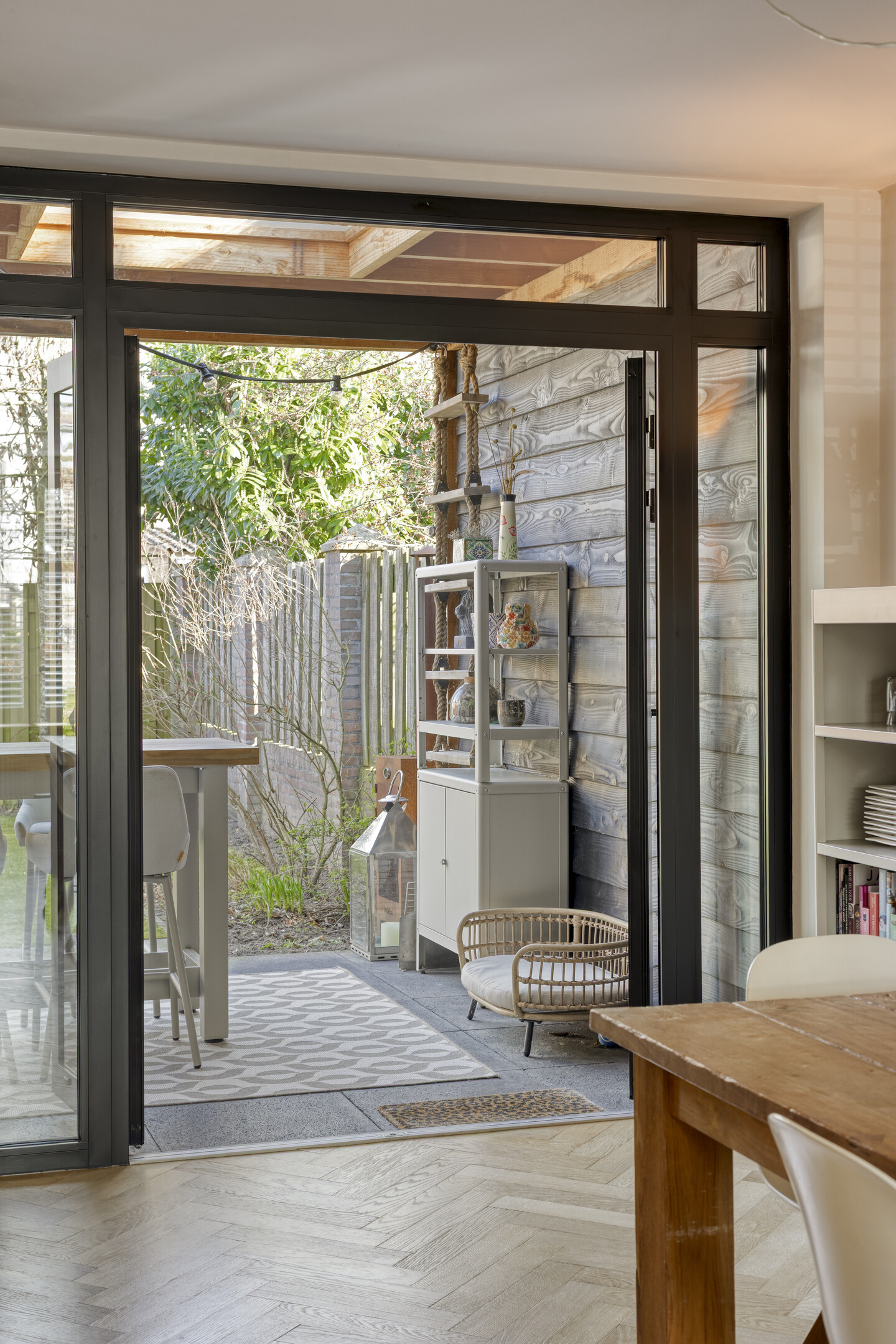 Openslaande tuindeuren naar gezellig overdekt terras en de achtertuin.
