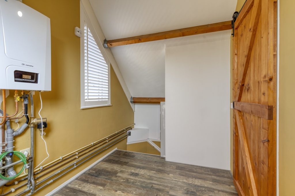 Voorzolder (Bergkast bij trapopgang), met zijraam en dakraam is geheel voorzien van een laminaatvloer. Hier bevinden zich de c.v. installatie en aansluiting ten behoeve van was- en droogapparatuur.