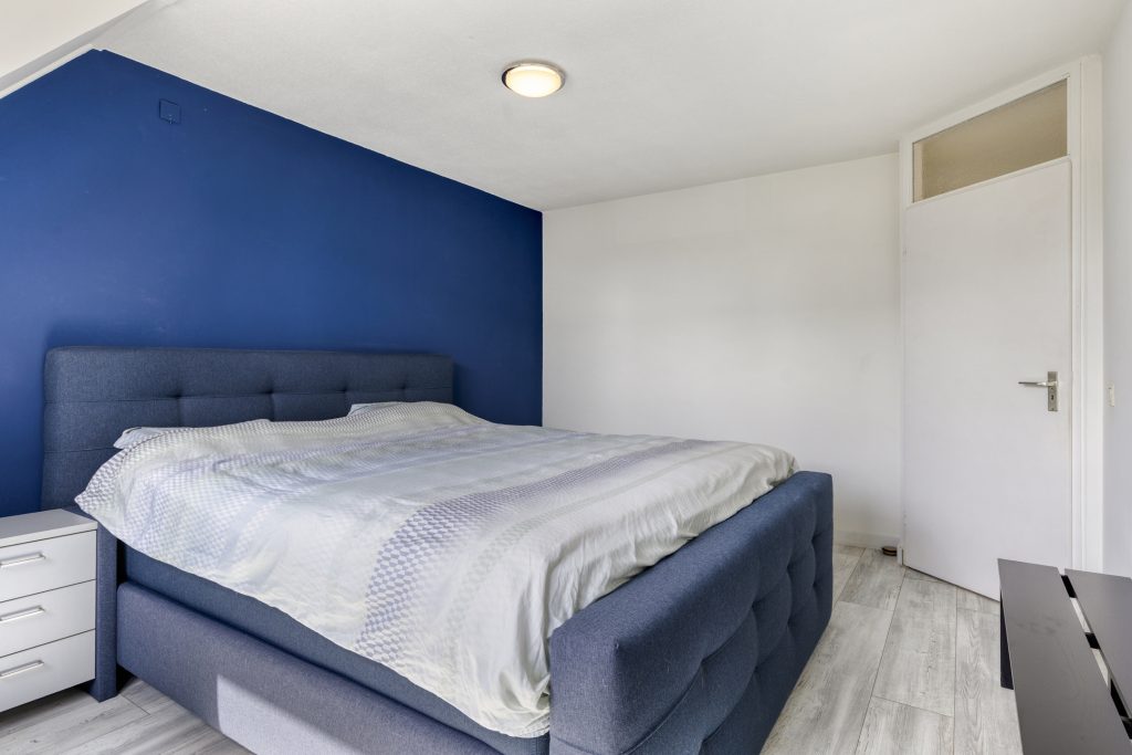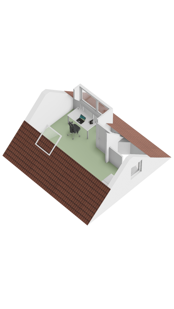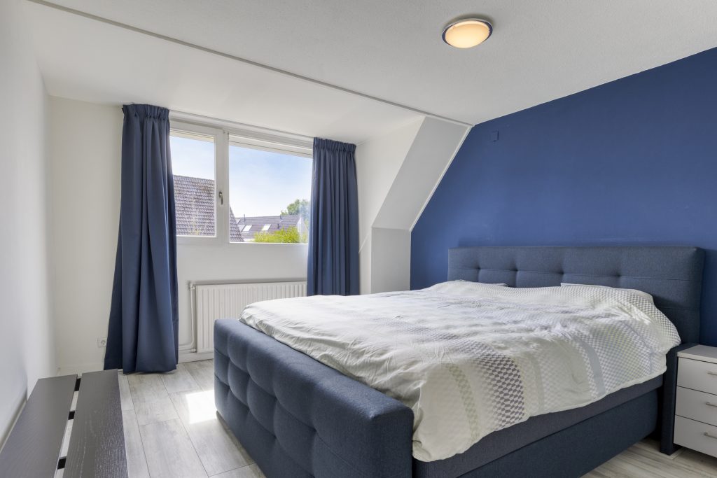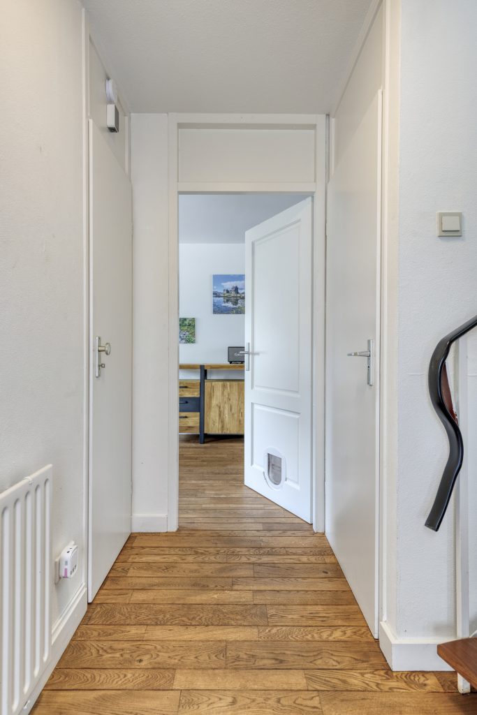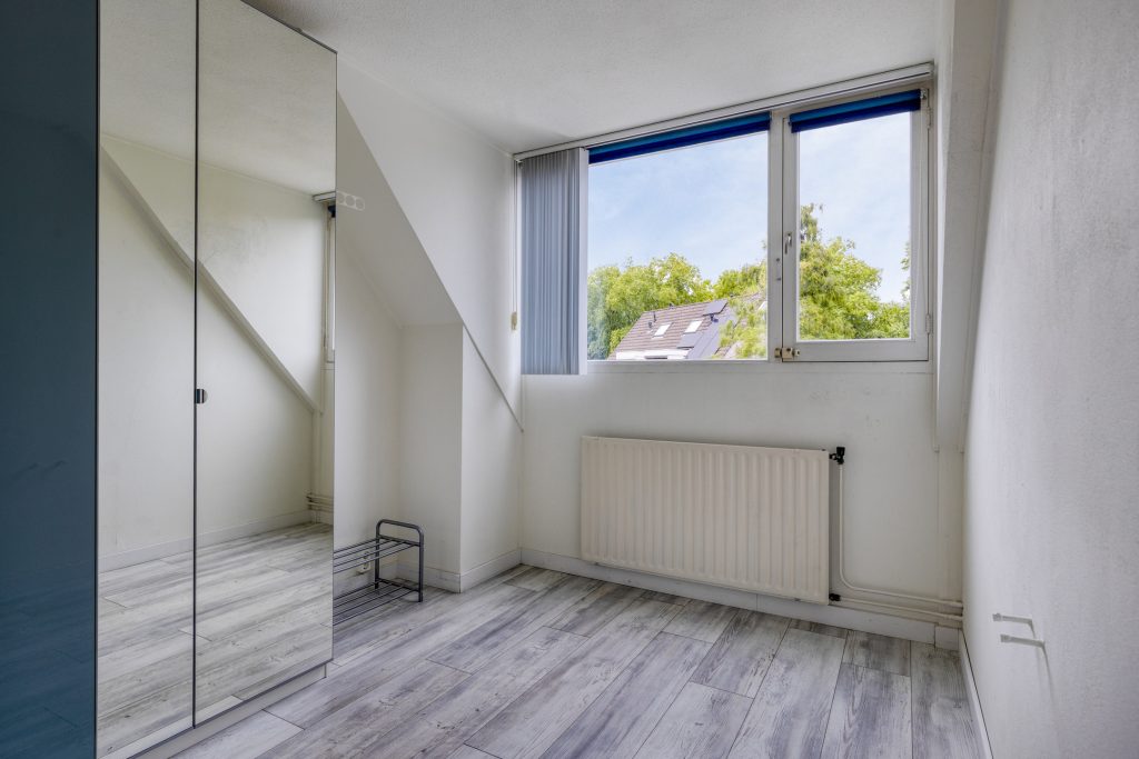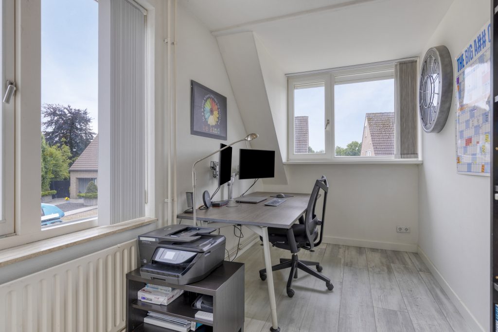 Slaapkamer 1 is gelegen aan de voorzijde met dakkapel en raam aan de zijkant. Deze kamer is nu in gebruik als thuiswerkplek.