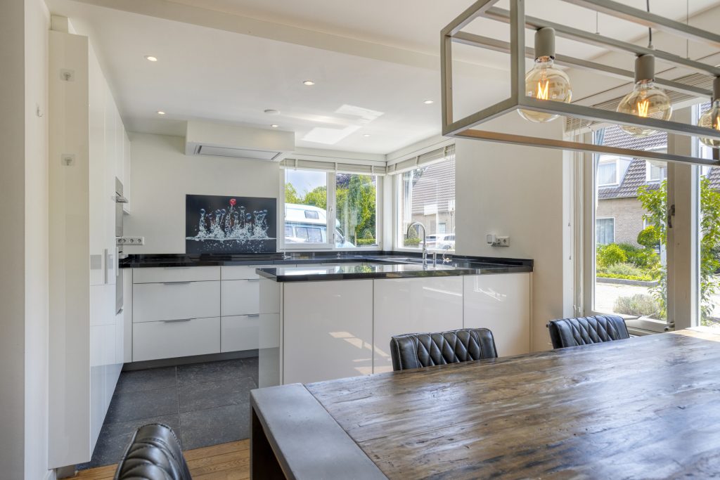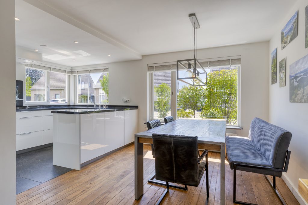 De keuken en het eetgedeelte van de woning zijn gelegen aan de voorzijde van de woning waardoor je een heerlijke ruime living aan de achterzijde hebt.