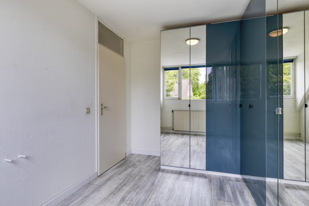 Slaapkamer 3 is gelegen aan de achterzijde en nu in gebruik als kleding/kastenkamer.