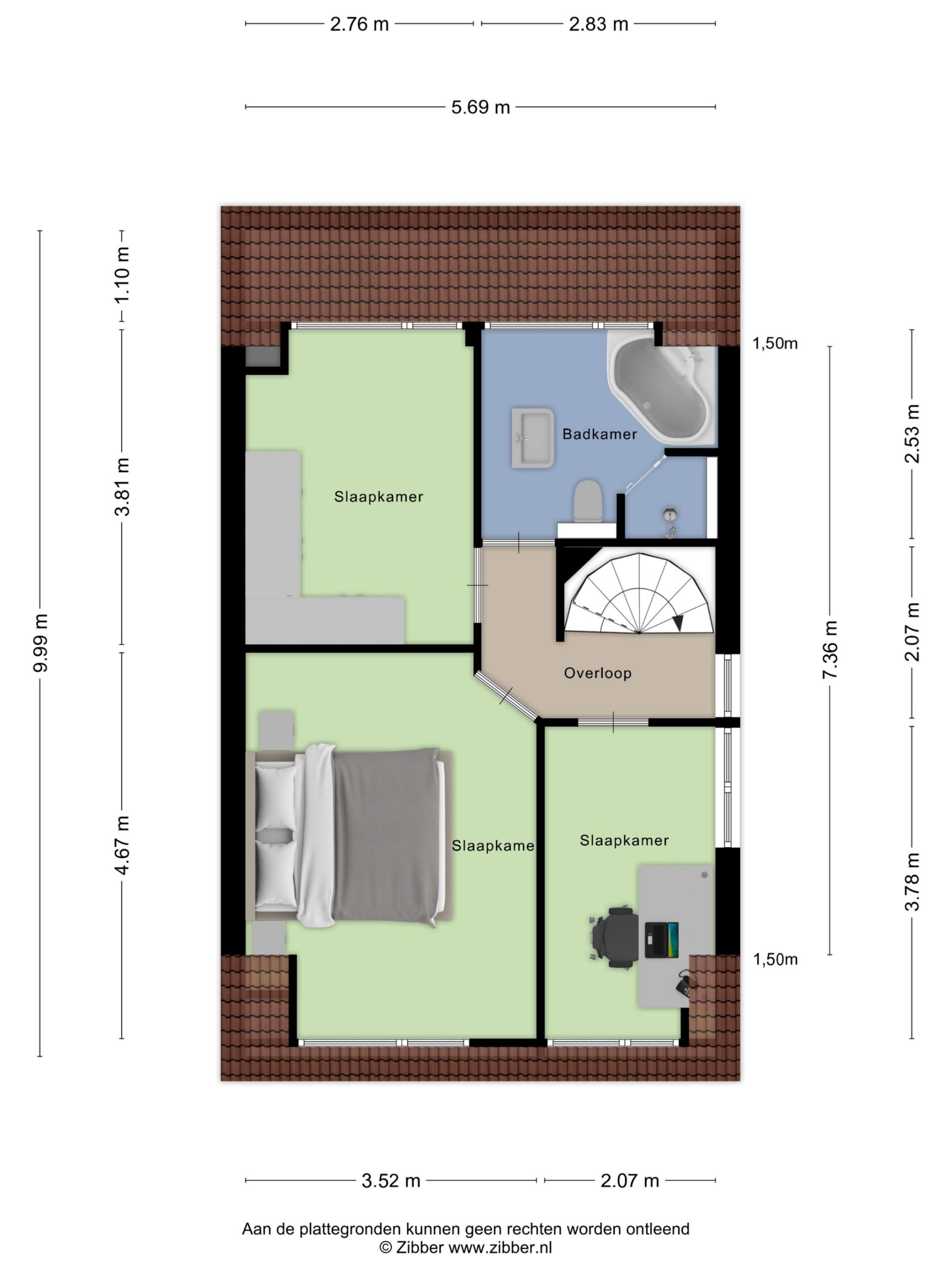 Slaapkamer 2, ouderslaapkamer, met dakkapel aan de voorzijde .