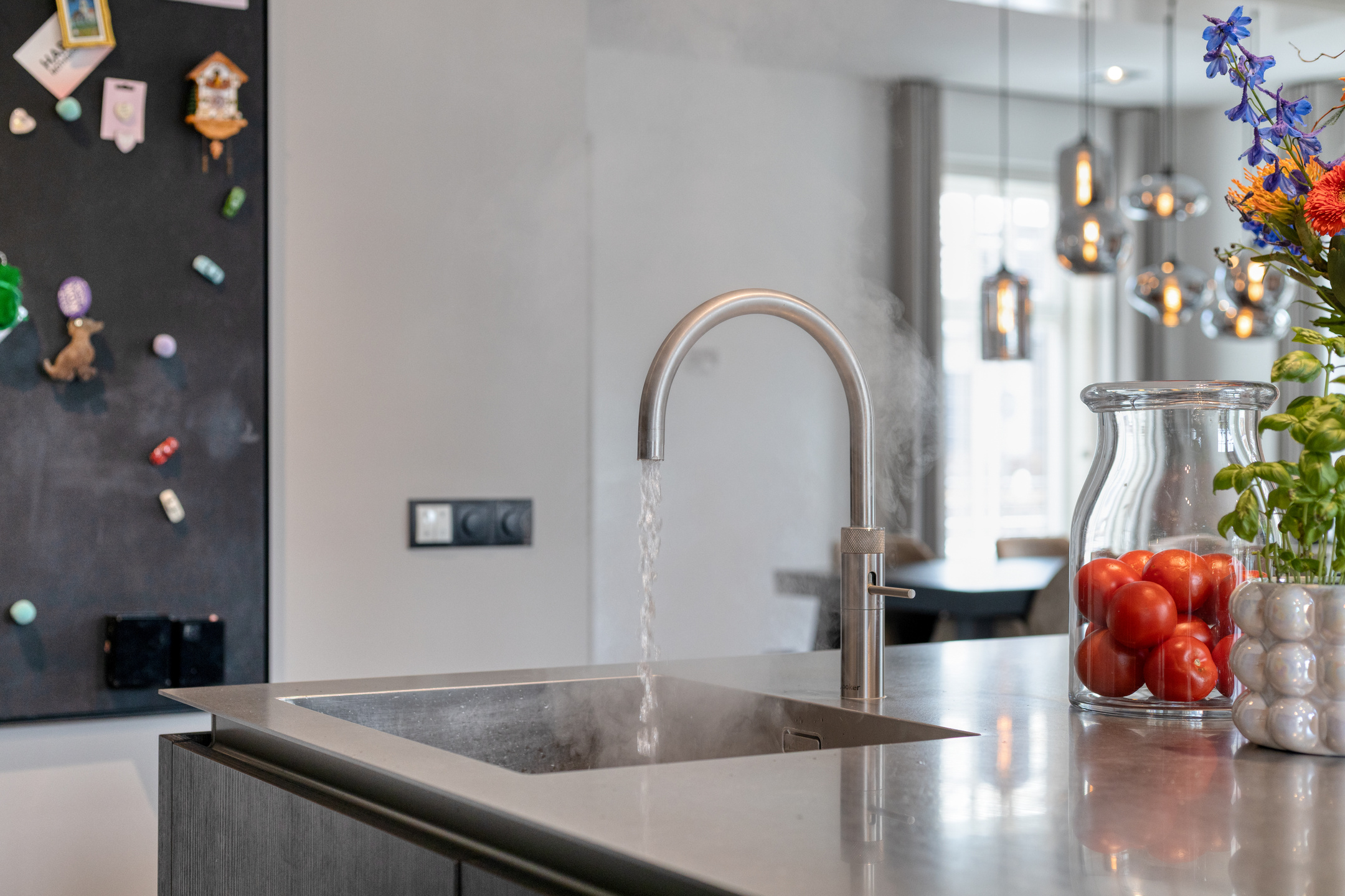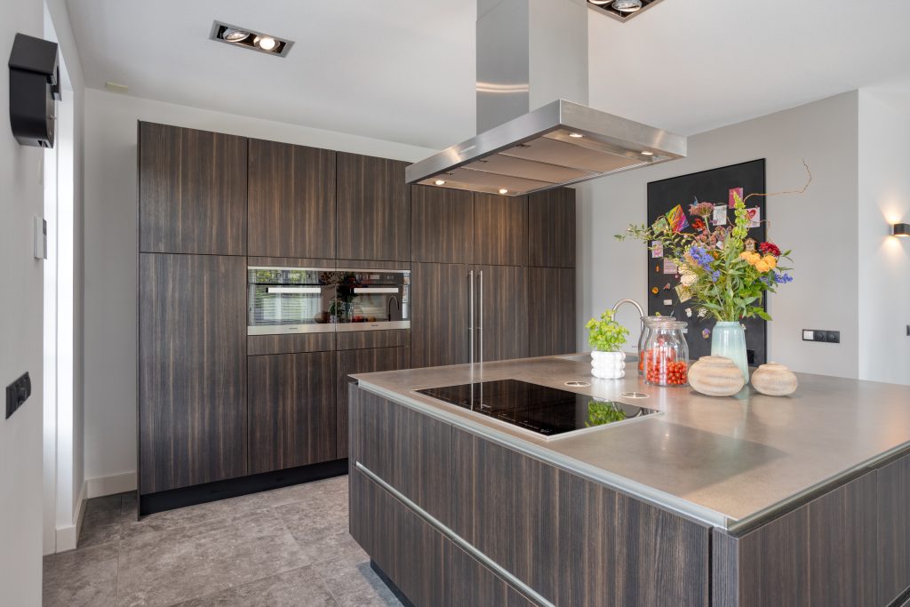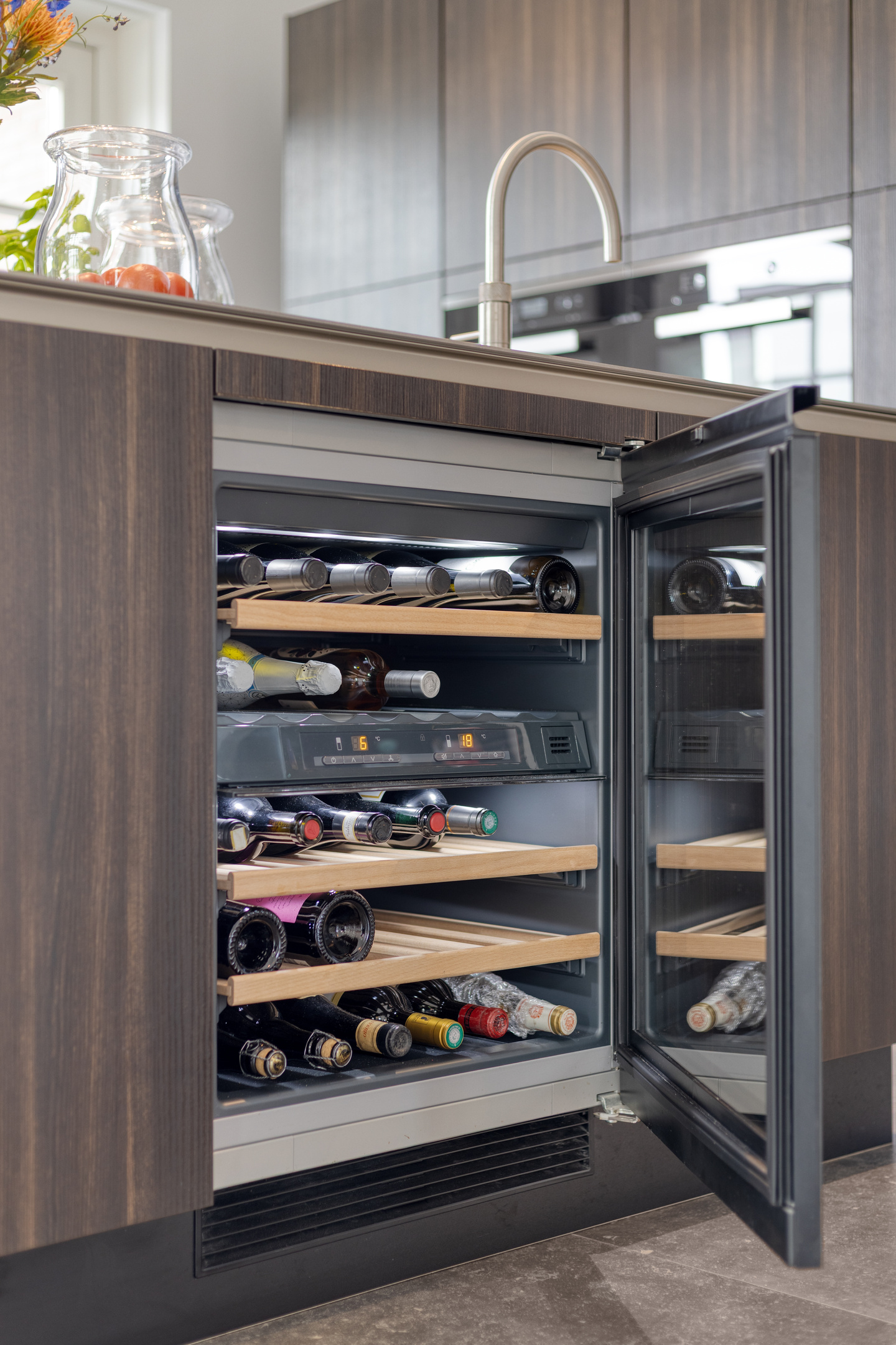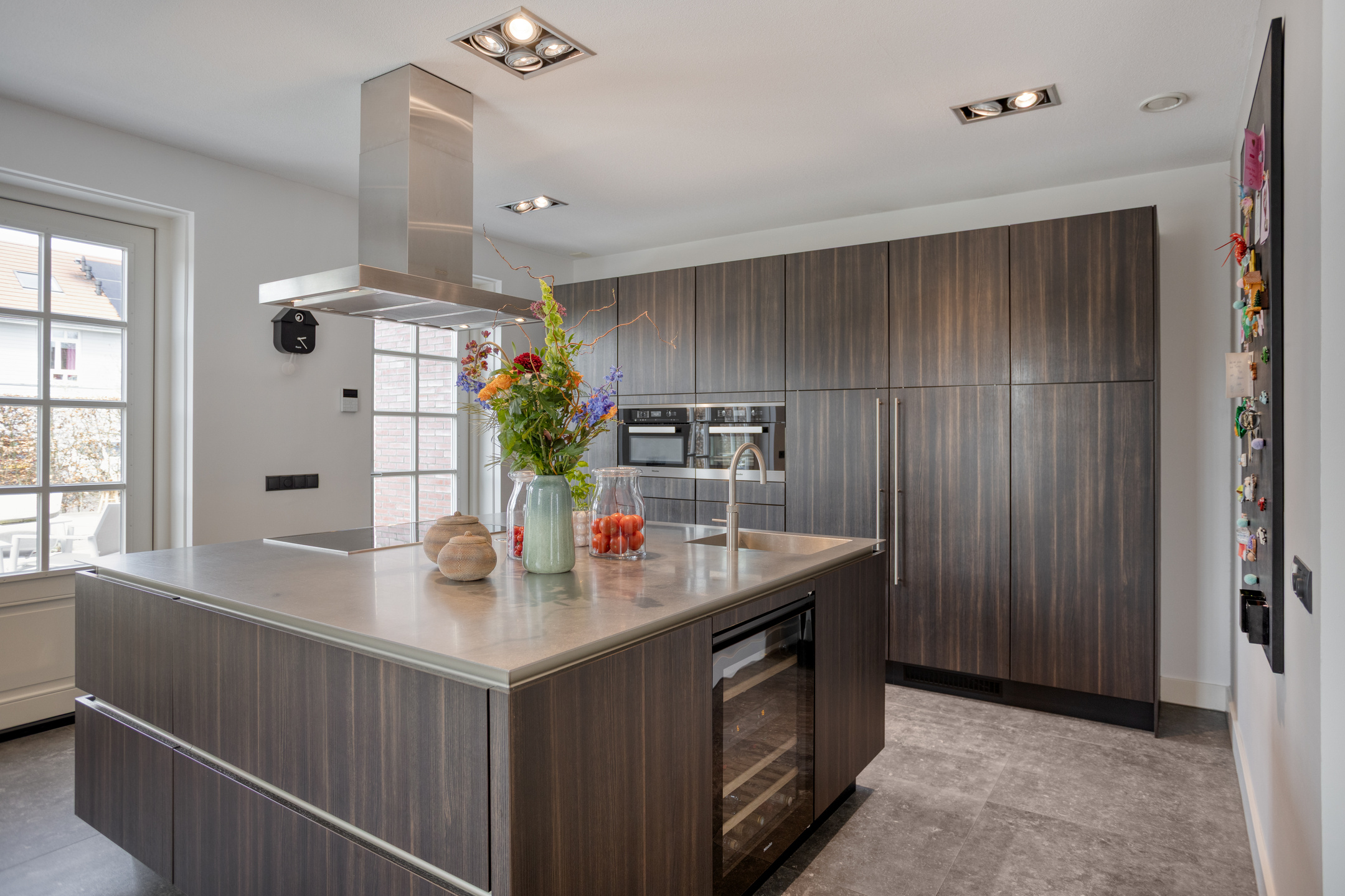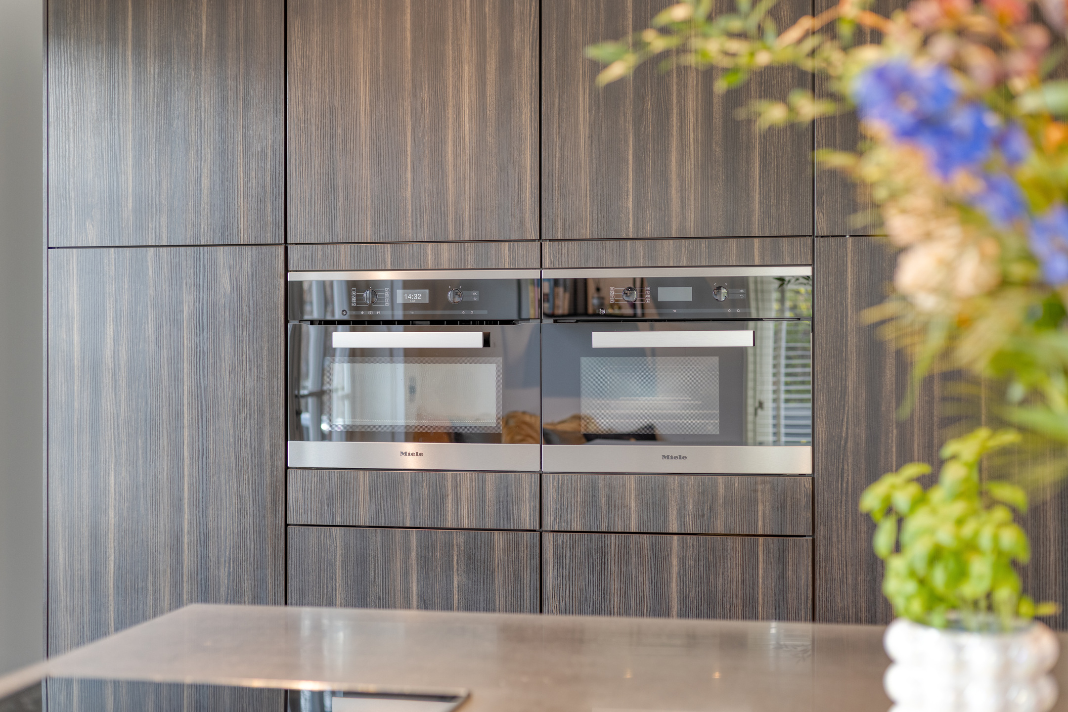 Deze luxe SieMatic leefkeuken is uitgerust met hoogwaardige Miele inbouwapparatuur en een Quooker-kraan, en biedt een perfecte balans tussen esthetiek en functionaliteit. Hier komt culinair genieten volledig tot zijn recht. De keuken beschikt over een oven/-magnetron, een combi stoomoven, een inductie kookplaat met RVS afzuigkap, grote koelkast, grote vriezer, wijnklimaatkast en vaatwasser.