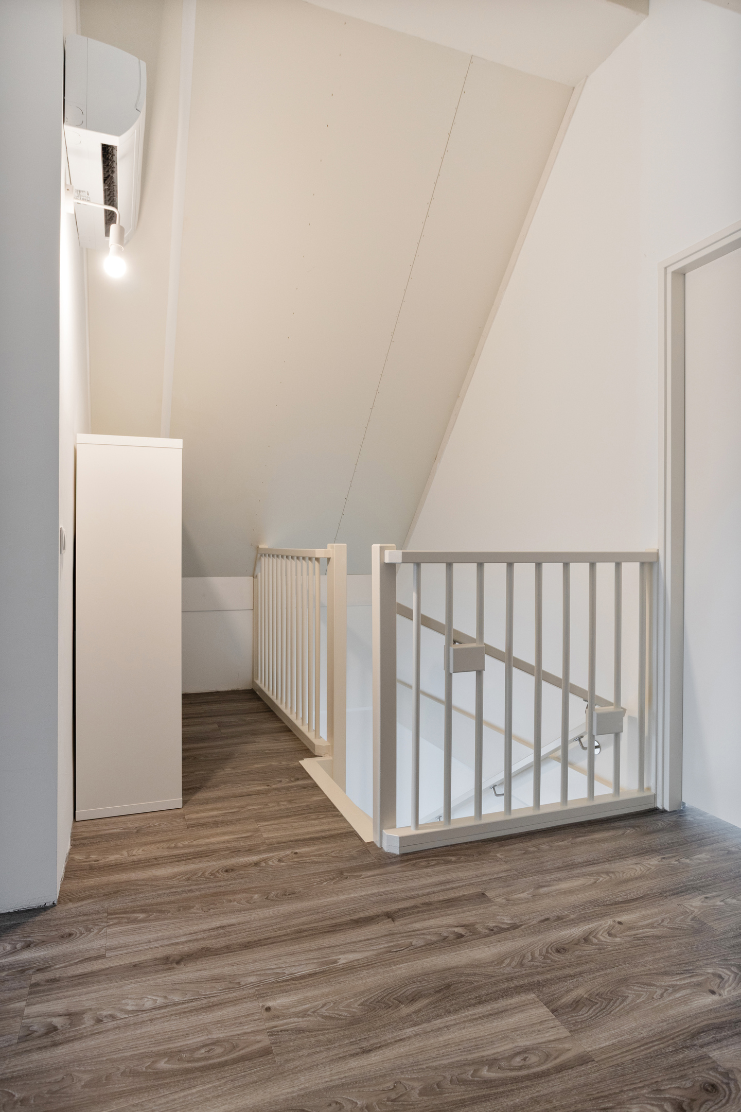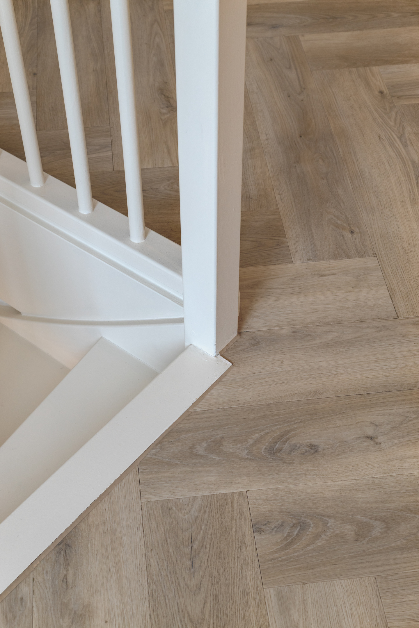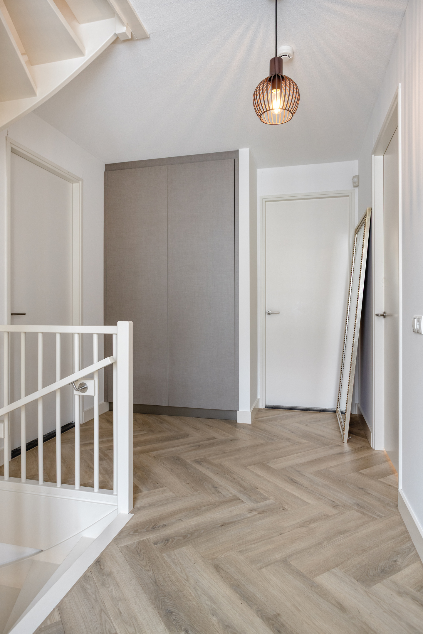 De ruime overloop beschikt over een fraaie visgraat PVC-vloer.