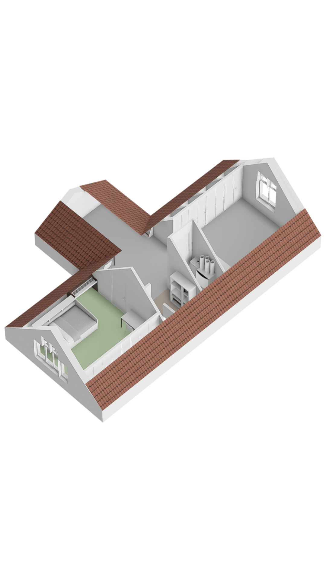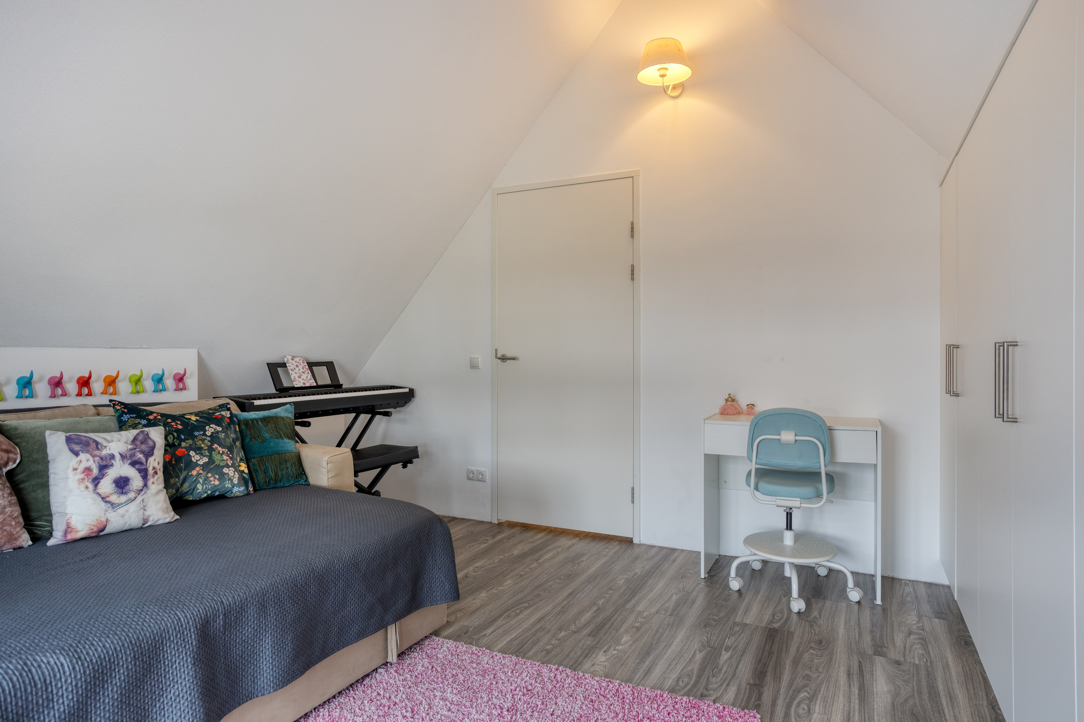 De gehele tweede verdieping is voorzien van een PVC-vloer en voegt nog eens een volwaardige slaapkamer met kastenwand toe.