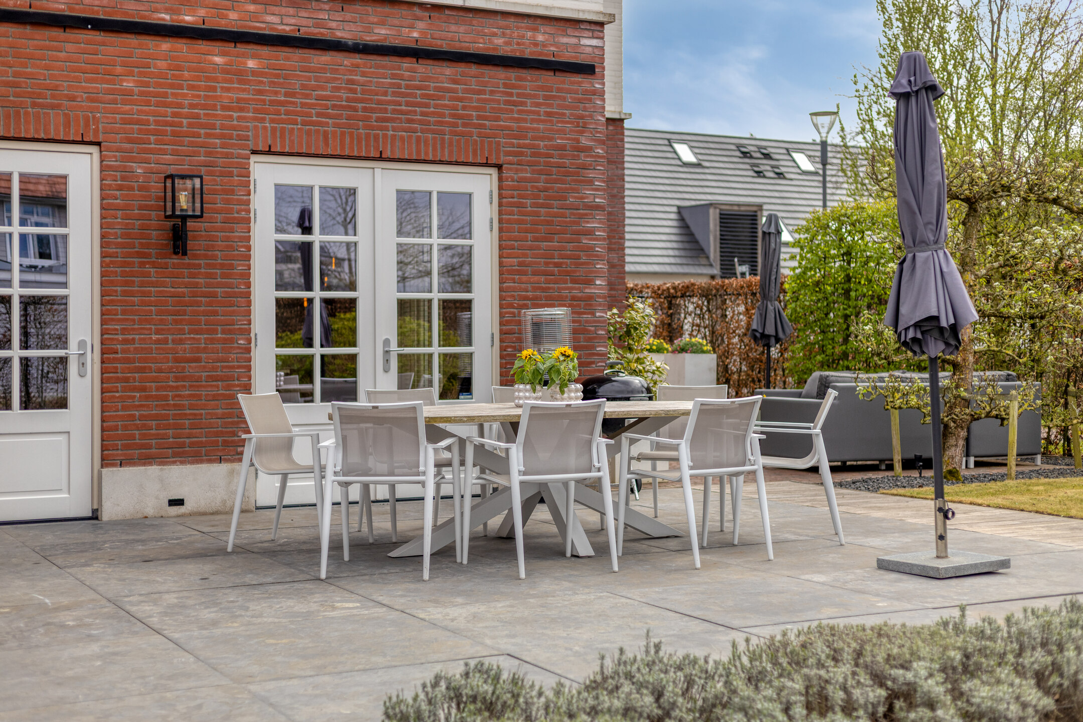 Grenzend zowel aan de eetkamer als de keuken ligt de fraai aangelegde tuin, een heerlijke plek waar je heerlijk kunt ontspannen.
