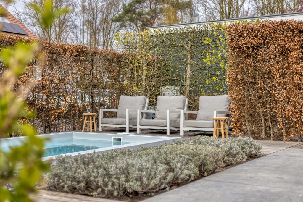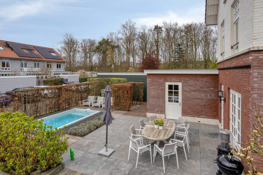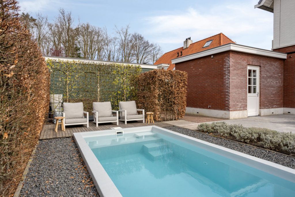 – Fraai onder architectuur aangelegde tuin rondom met veel privacy, verwarmd zwembad, garage én berging en een