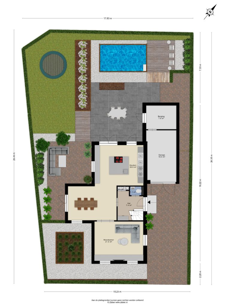 De verstrekte gegevens in deze brochure zijn met zorg samengesteld. Voor de juistheid van de informatie zijn wij in belangrijke mate afhankelijk van derden en aanvaarden wij, noch de verkoper, enige aansprakelijkheid. De opgegeven maten zijn circa-maten. De verstrekte informatie is van algemene aard, geheel vrijblijvend en is slechts een uitnodiging om in onderhandeling te treden.