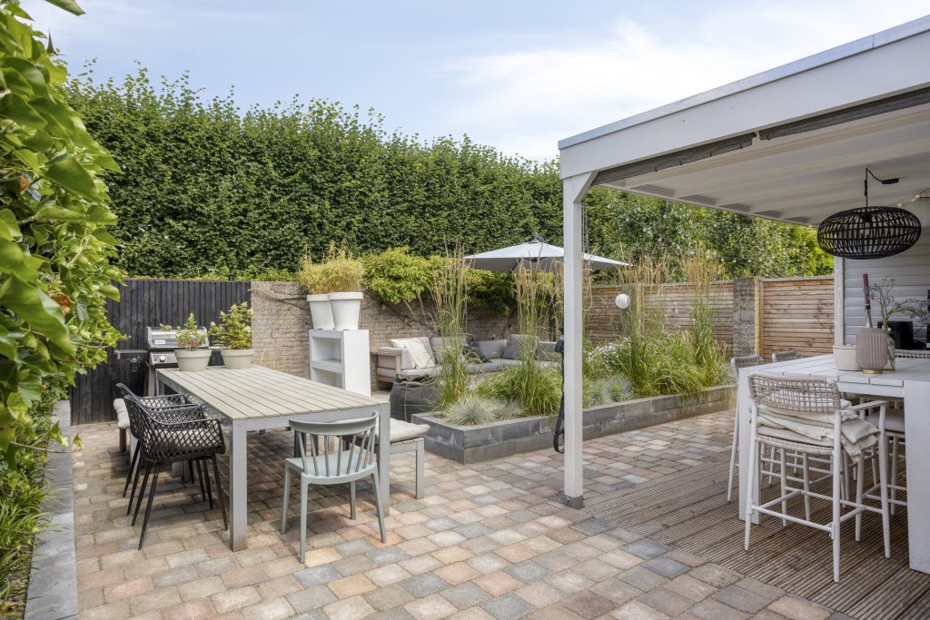 * Fraai aangelegde privacy biedende tuin (2024) met diverse terrassen, borders en een heel fijn overdekt terras met buitenkeuken;