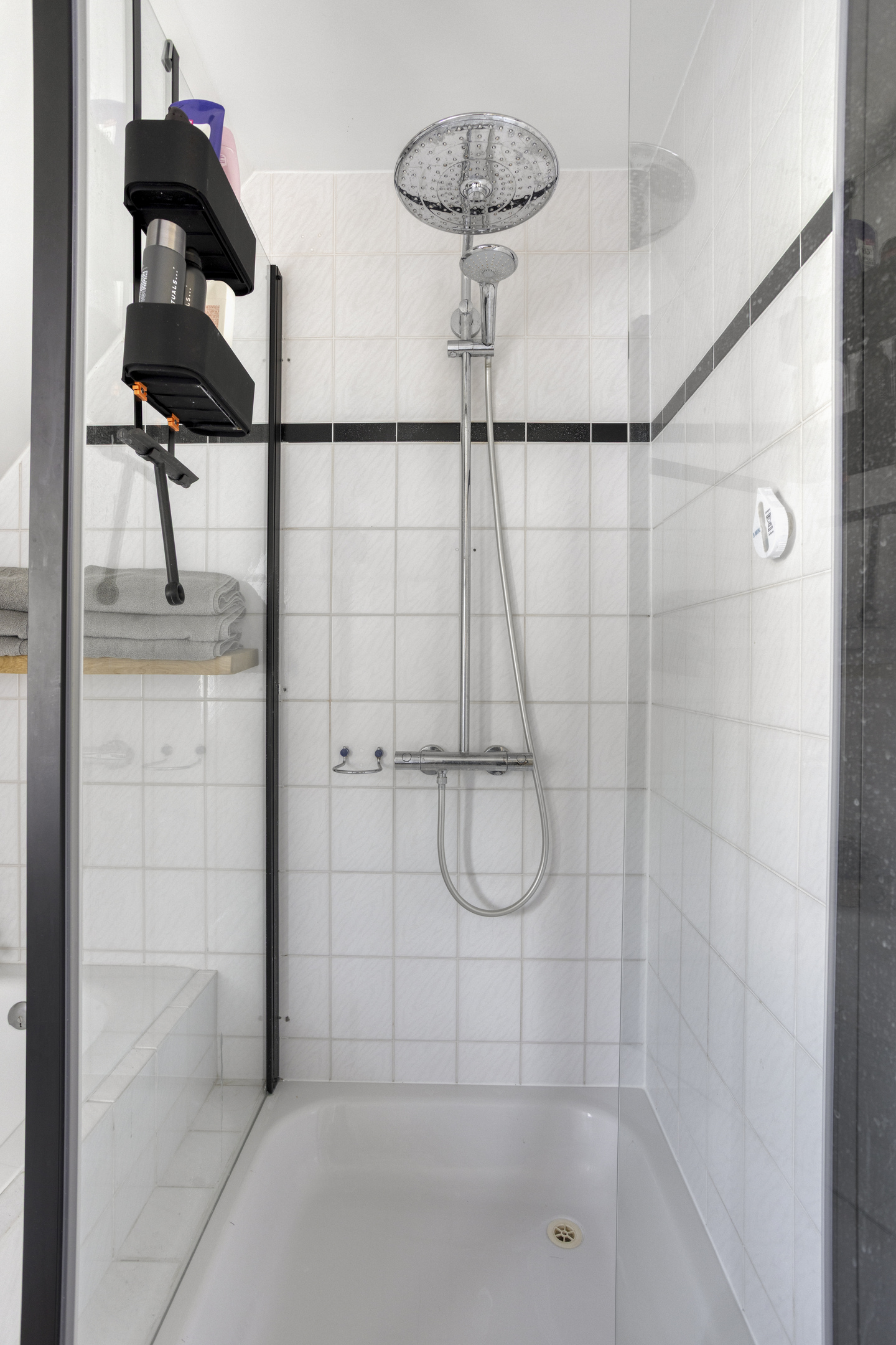 Accessible via a staircase. Lovely, spacious bedroom 5 features a large skylight on one side and a dormer window (2018) spanning the entire width of the room on the other. This bedroom has laminate flooring and a large vanity unit with two taps. It also provides access to the boiler room and walk-in shower with a steel door and rain shower head. The central heating system is from 2010.