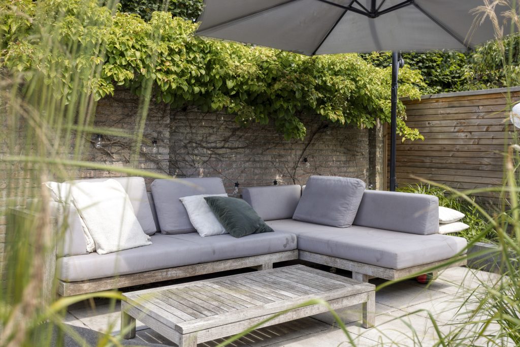 Ondanks dat de tuin op het noordwesten ligt, kan men de gehele dag van de zon genieten op meerdere fraaie plekjes in de sfeervolle tuin.