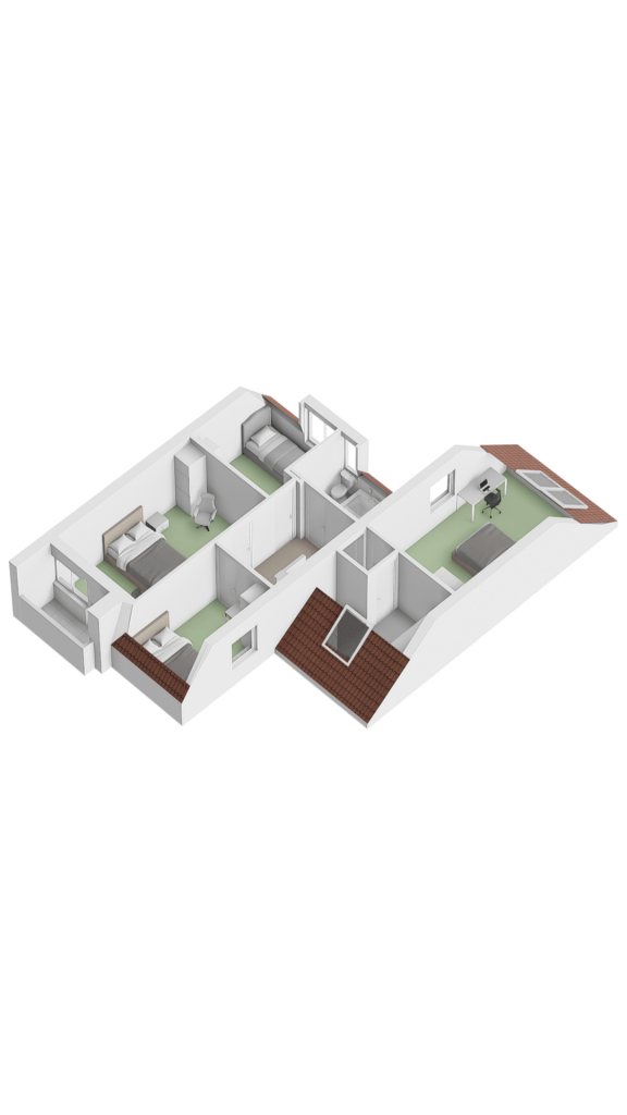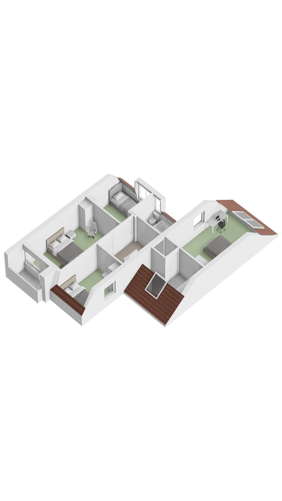 De overloop geeft toegang tot de 4 slaapkamers en badkamer.