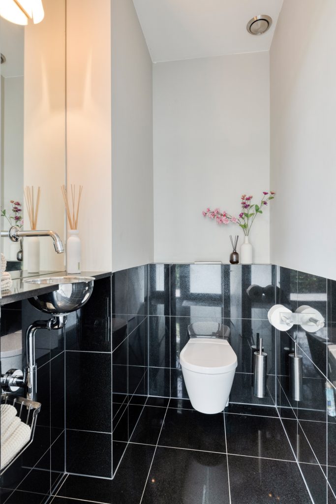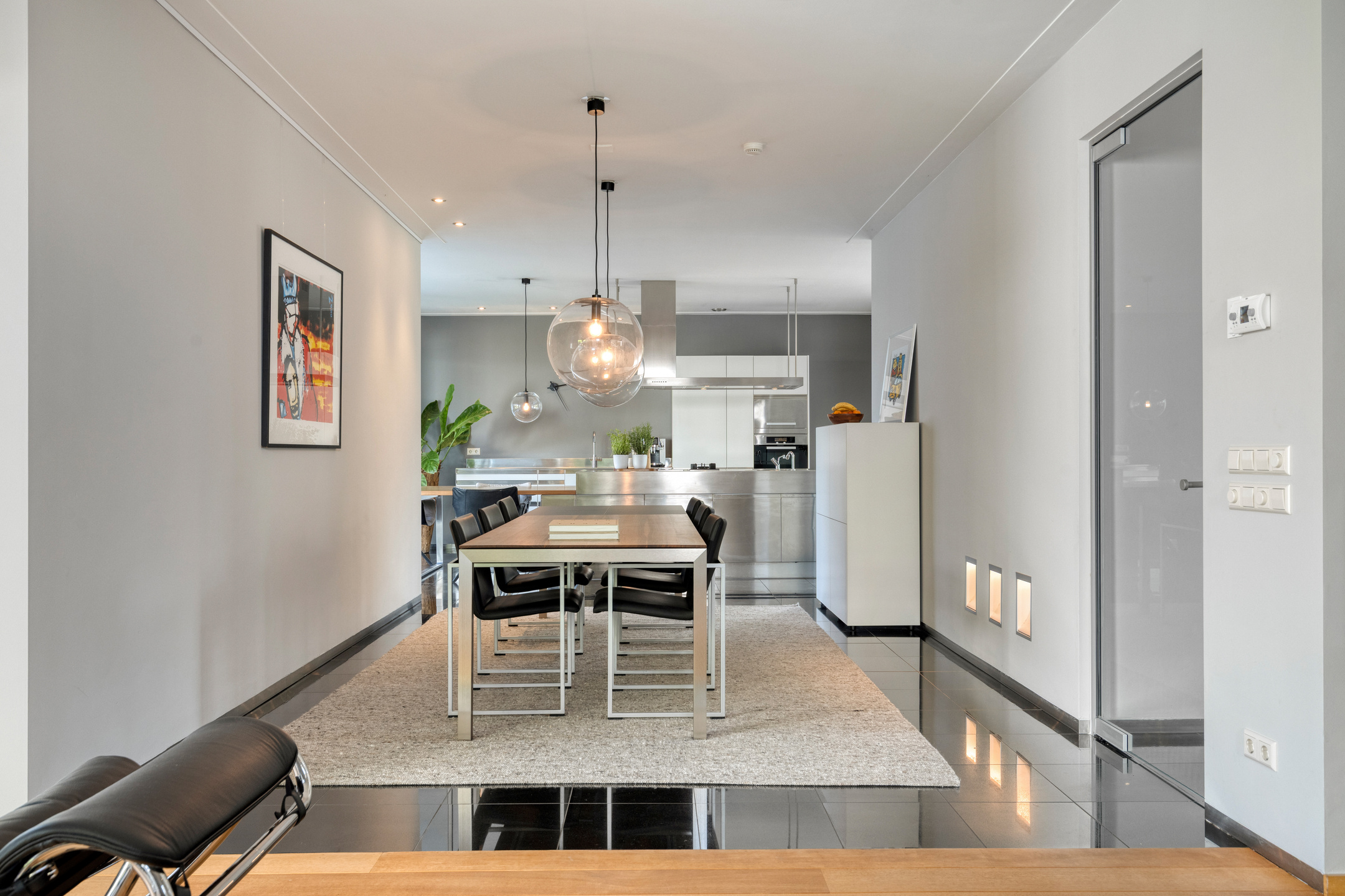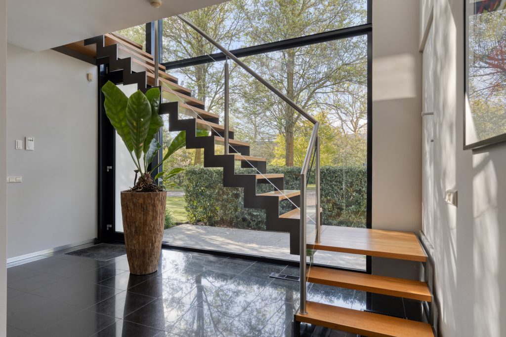 • De royale hal combineert allure met comfort: een hardstenen vloer met vloerverwarming, een luxe toilet, een garderobekast, een designtrap naar de eerste verdieping en een fraaie houten trap naar het souterrain.