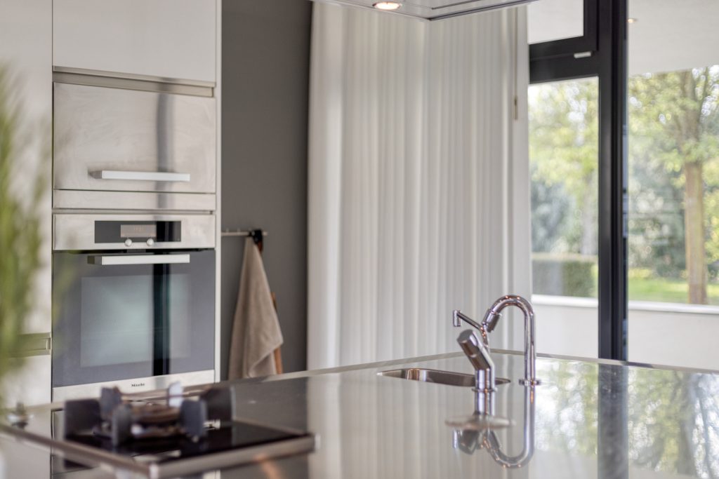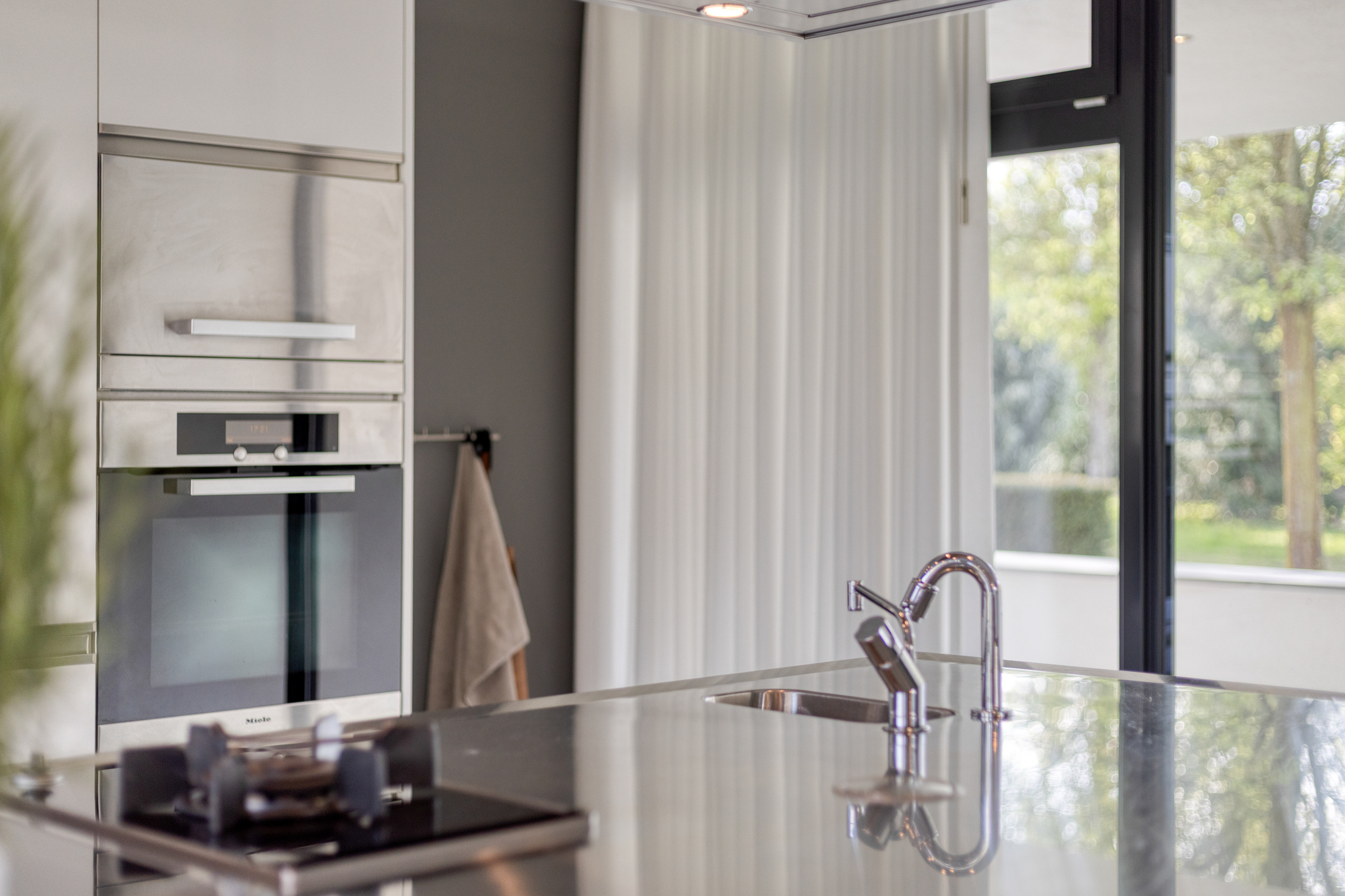 • Moderne keuken met o.a. Miele hogedruk stoomoven, Miele combi-oven & magnetron, Miele vaatwasser, Liebherr koelkast, Miele inductiekookplaat en Quooker.