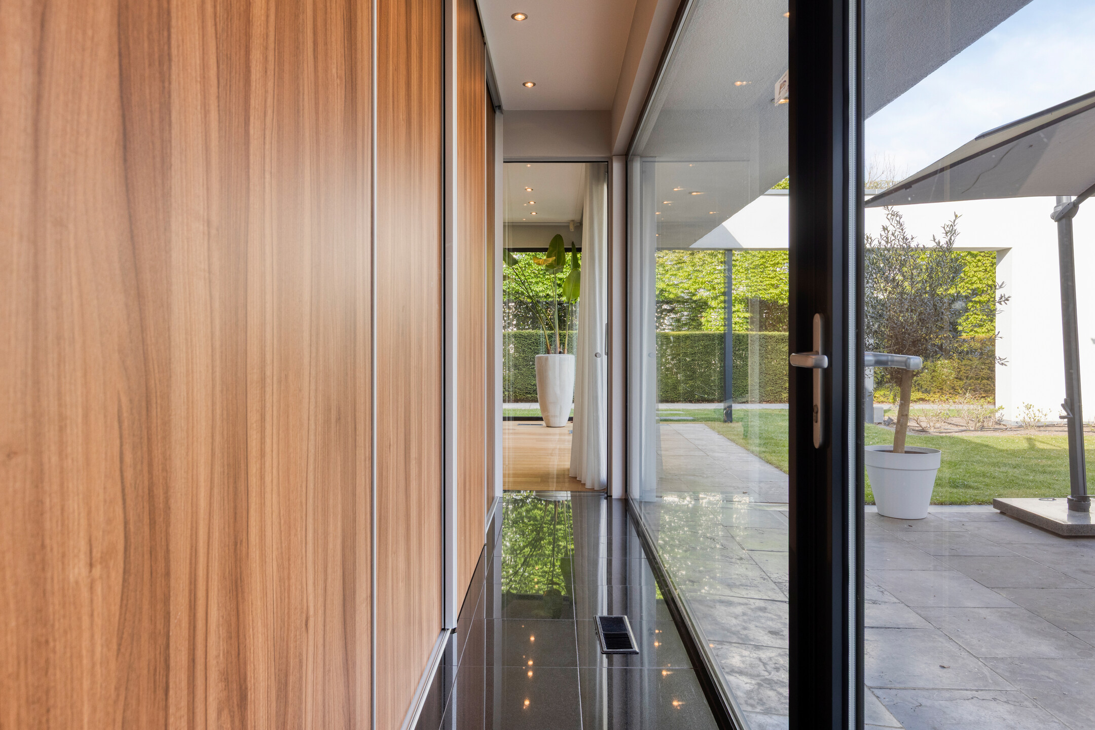 • Praktisch én mooi: de bijkeuken/corridor is licht door de raampartijen en heeft een schuifkastenwand met geïntegreerd keukenblok.
