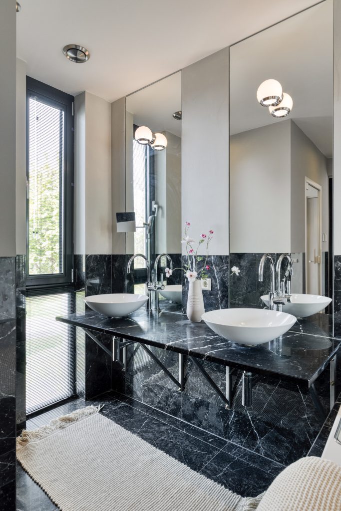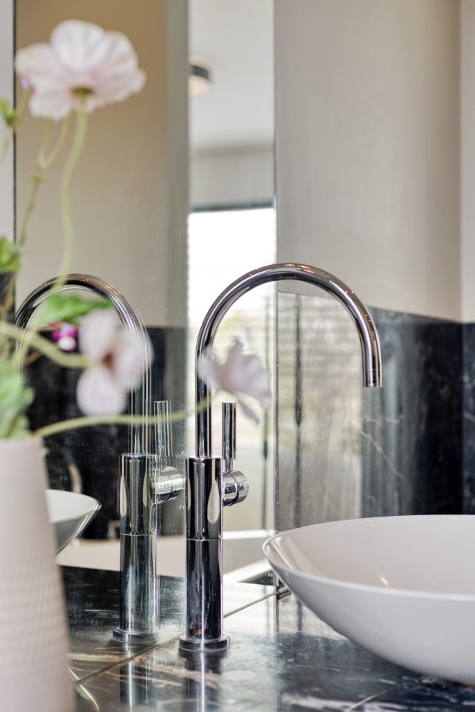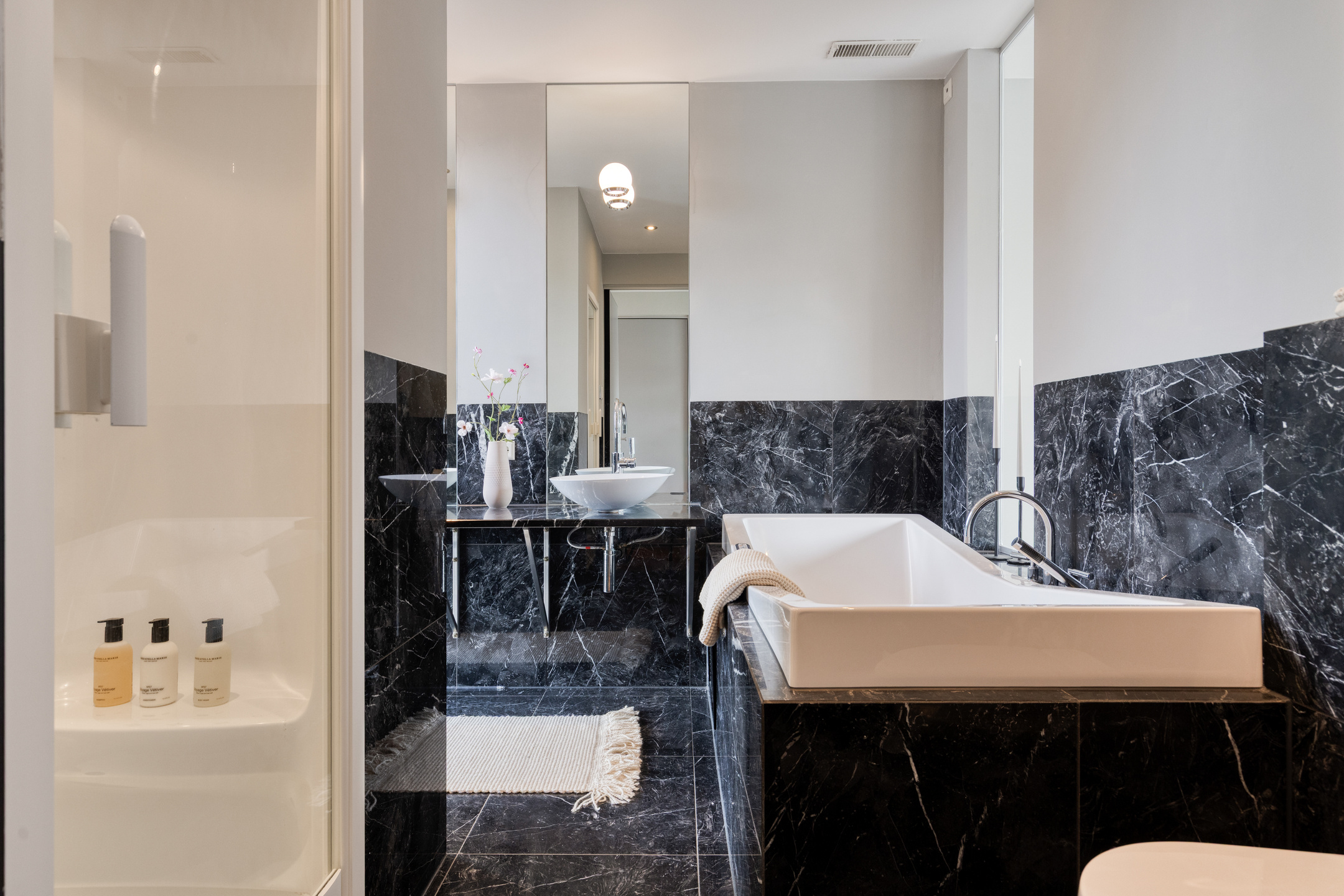 • De master bedroom voelt als een privésuite en staat in directe verbinding met een luxe marmeren badkamer (Nero Marquina) met whirlpool, regendouche-/stoomcabine, toilet en dubbele wastafel.