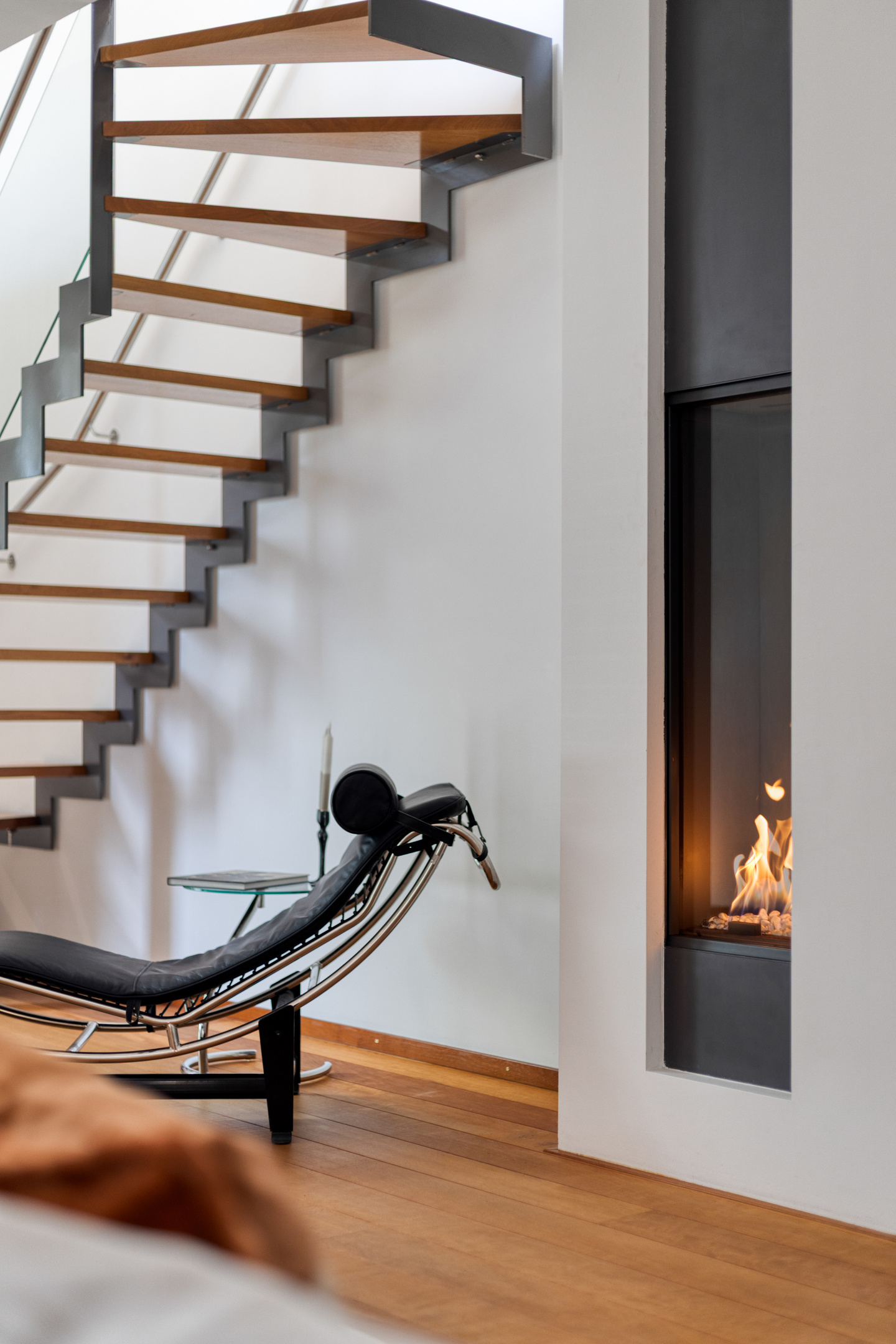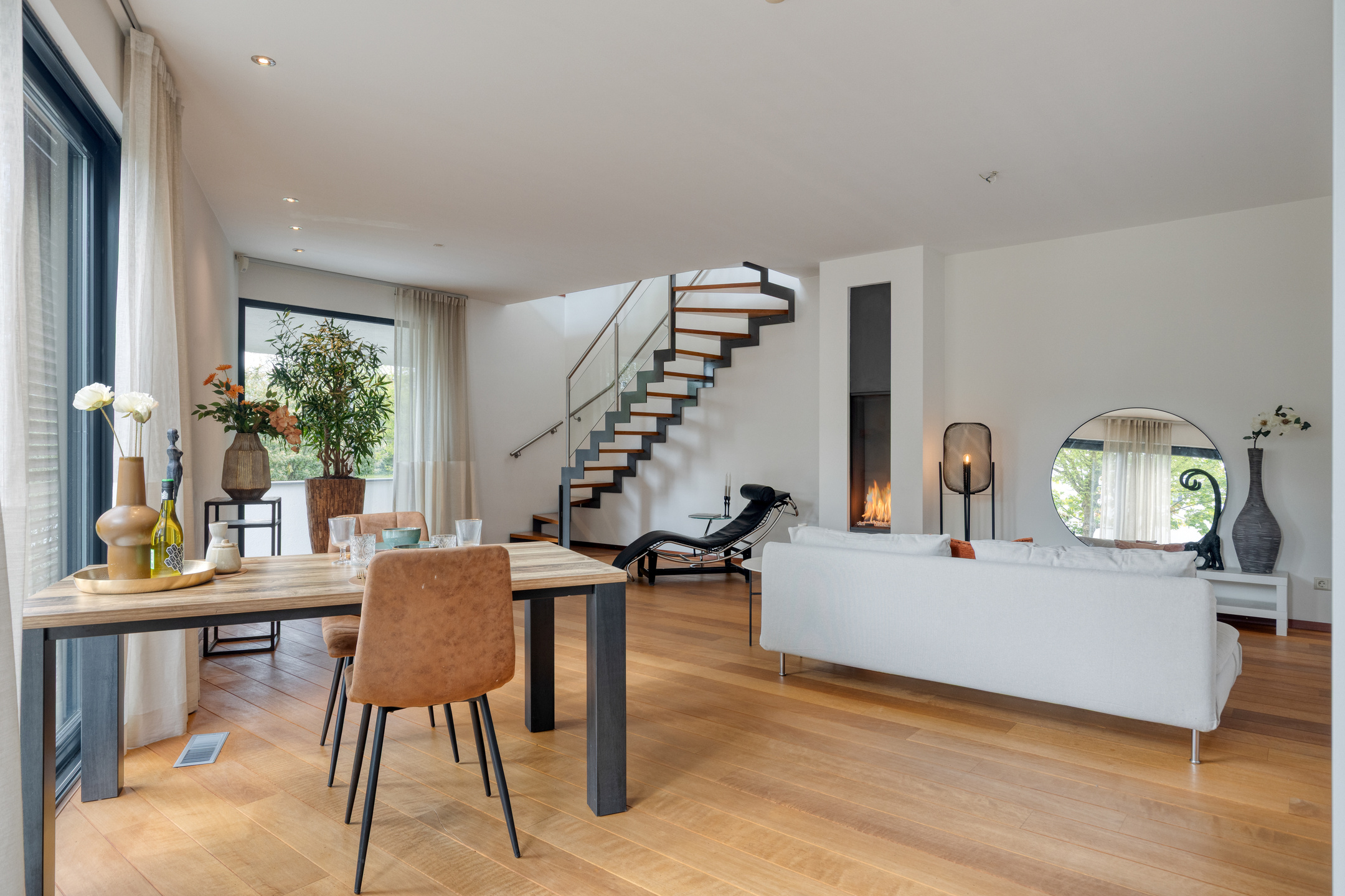 • Ruime living met houten vloer en een design gashaard – een heerlijke plek om te landen.