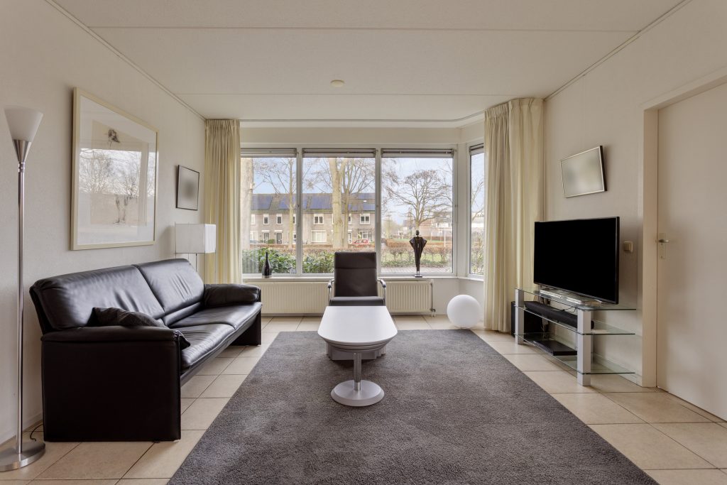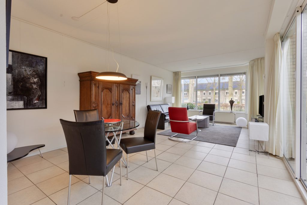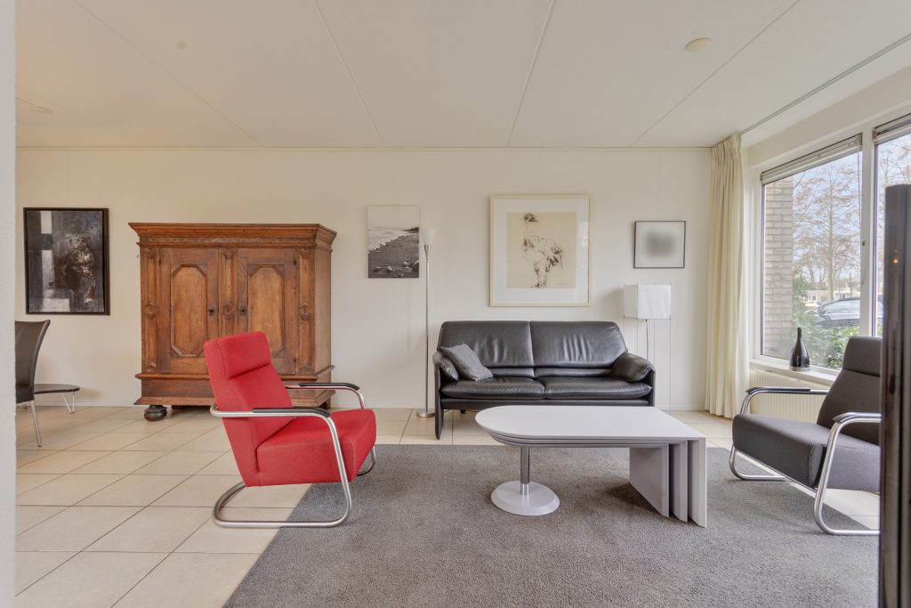 De ruime en sfeervolle woonkamer is afgewerkt met een tegelvloer met vloerverwarming en baadt in het licht dankzij de grote raampartij met uitzicht op het plantsoen. Via de schuifpui bereikt u de patio. Deze keurig bestrate patio is voorzien van een geïsoleerd, elektrisch bedienbaar vouwdak en radiatoren, waardoor u deze fijne extra ruimte het hele jaar door kunt gebruiken. In de zomer is het hier heerlijk genieten in alle rust en privacy.