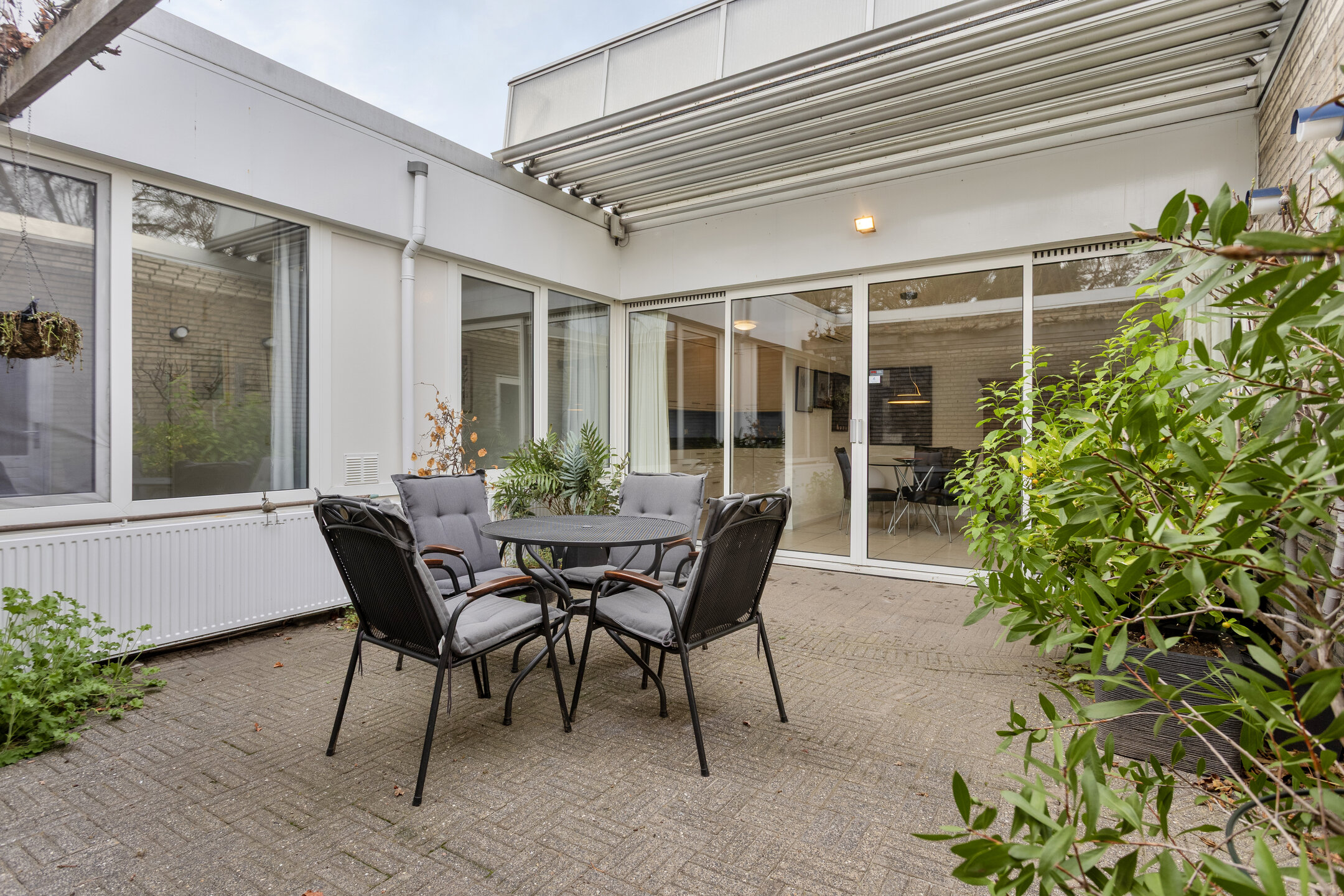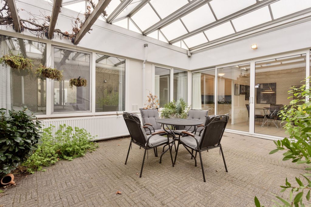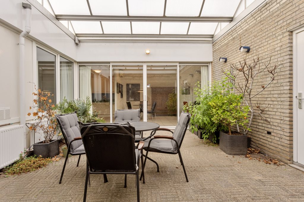 • Patio voorzien van een elektrisch bedienbaar vouwdak (2002), waardoor deze als volwaardige extra woonruimte te gebruiken is